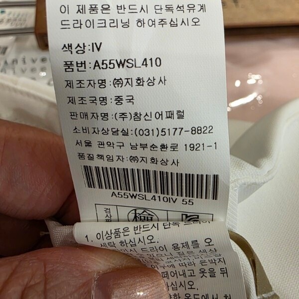세탁방법 및 취급시 주의사항 : 드라이크리닝