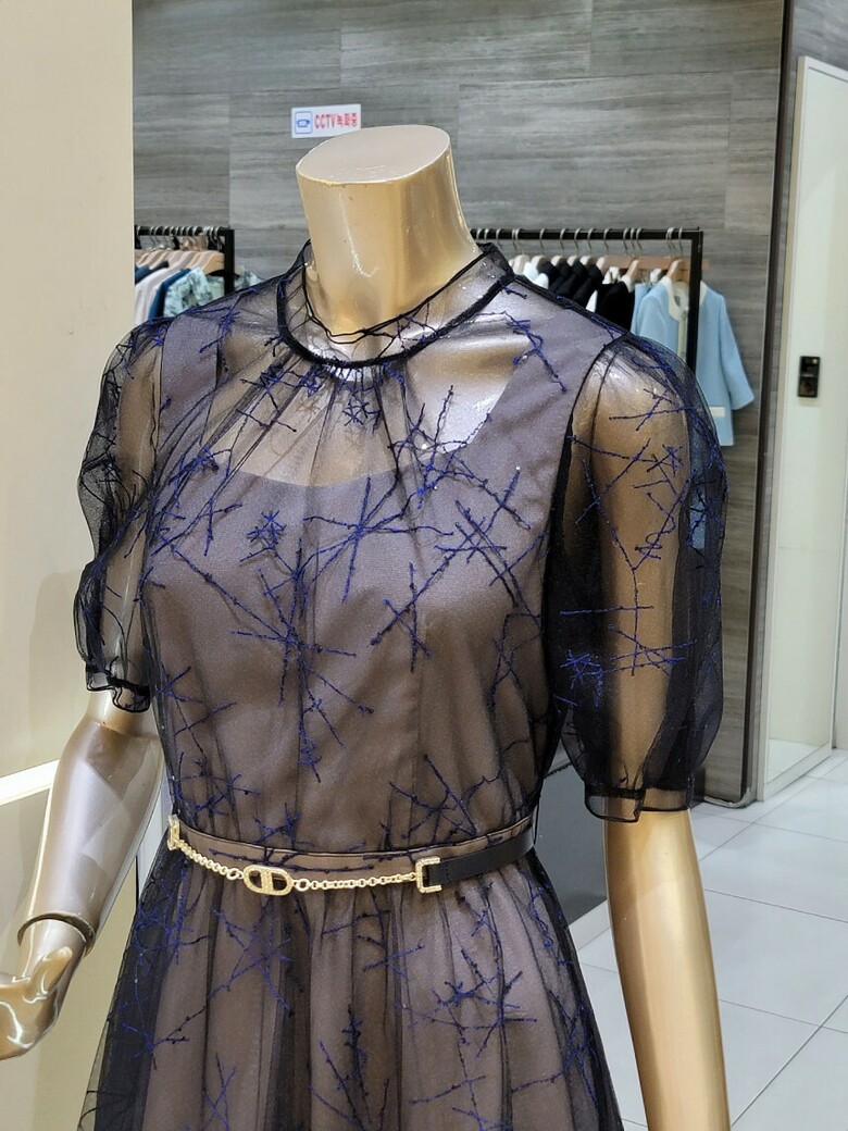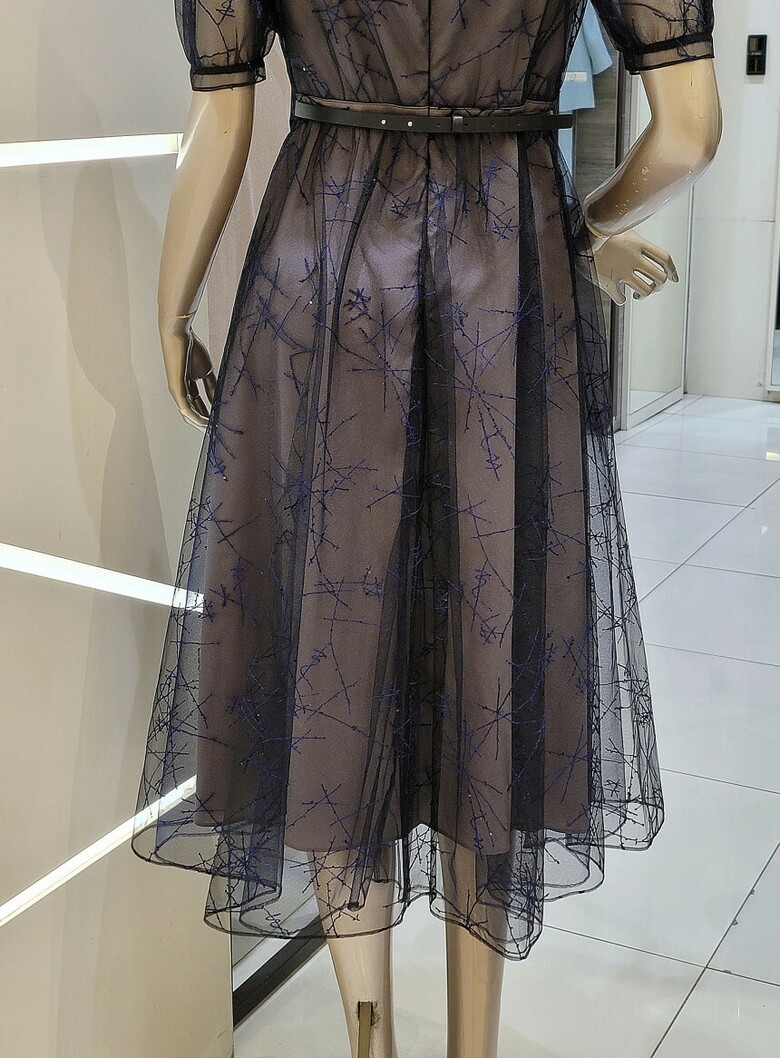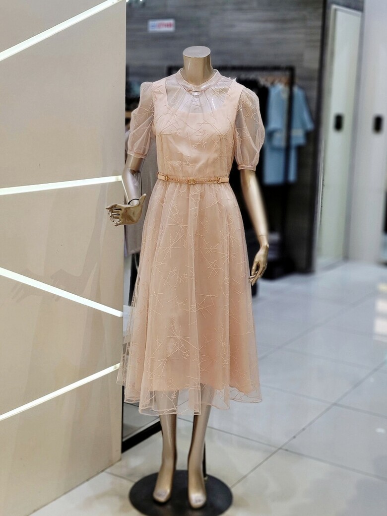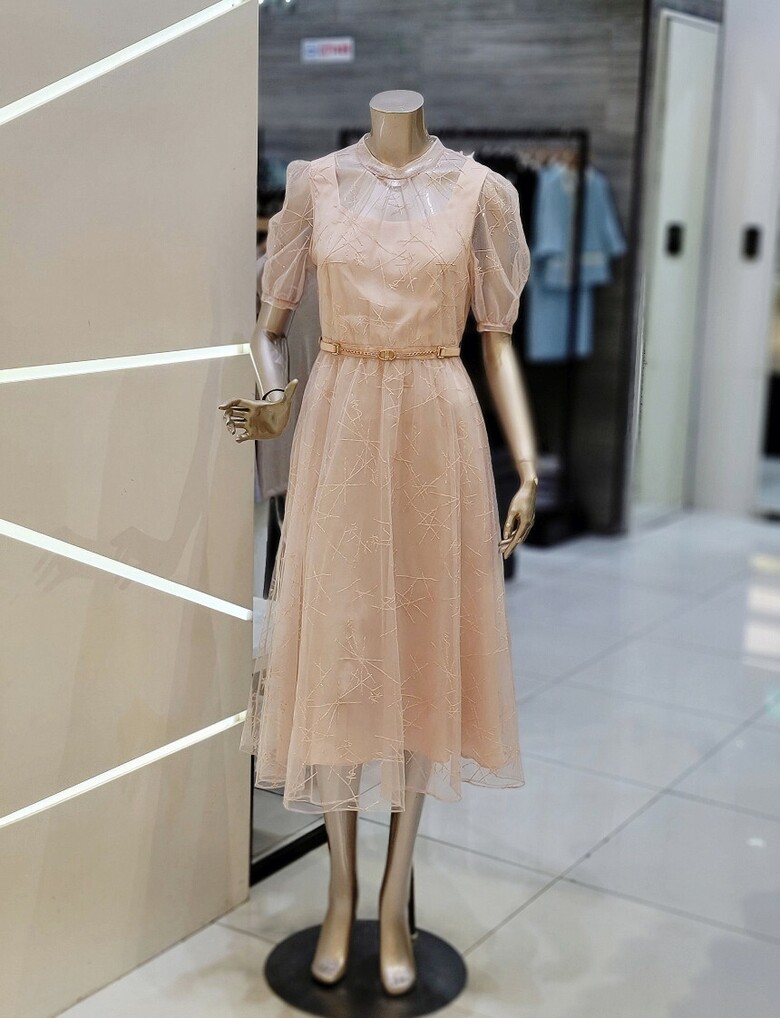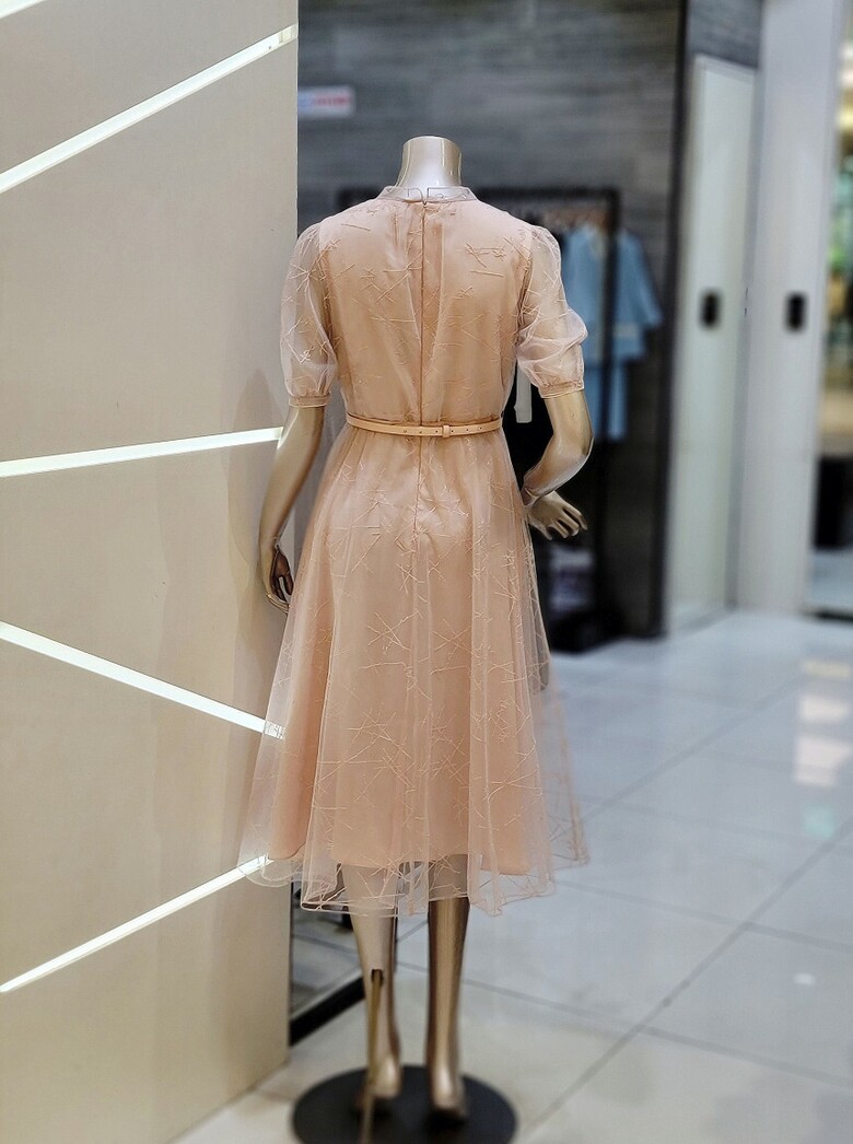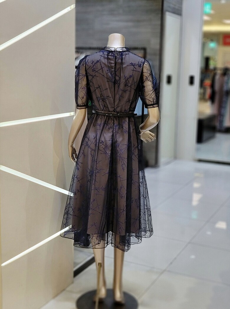 시스루 셔링 플레어 원피스 MYBAWO5150