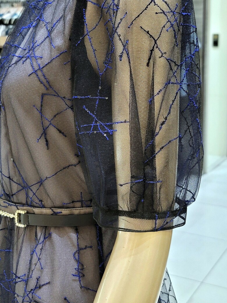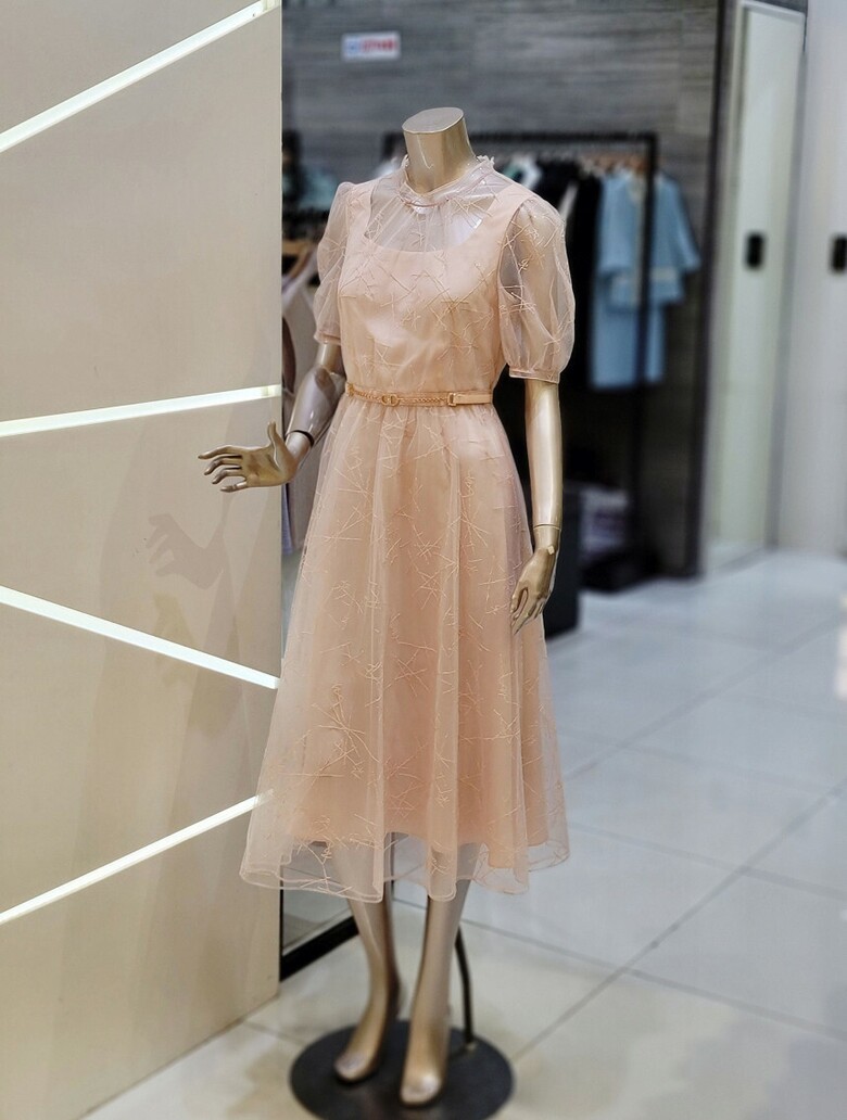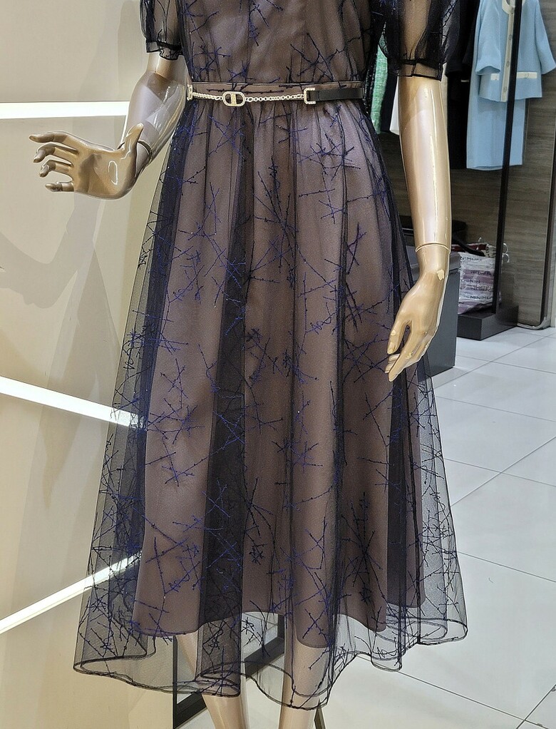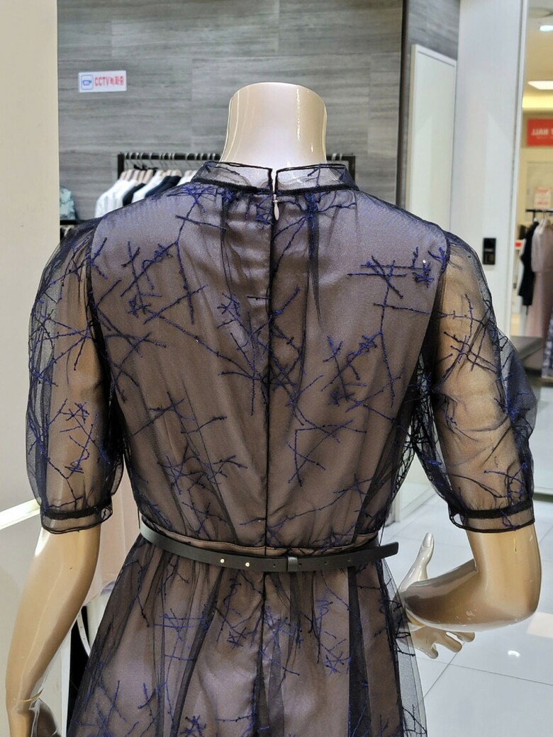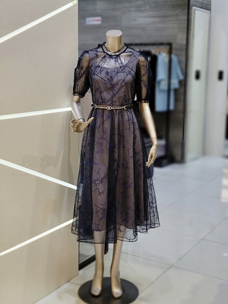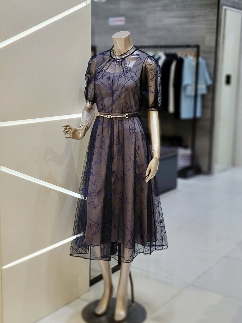 시스루 셔링 플레어 원피스 MYBAWO5150