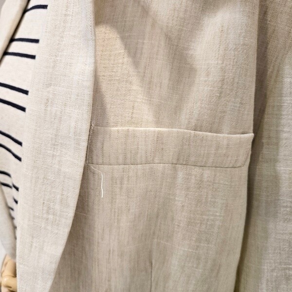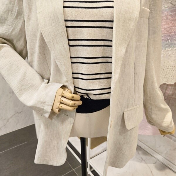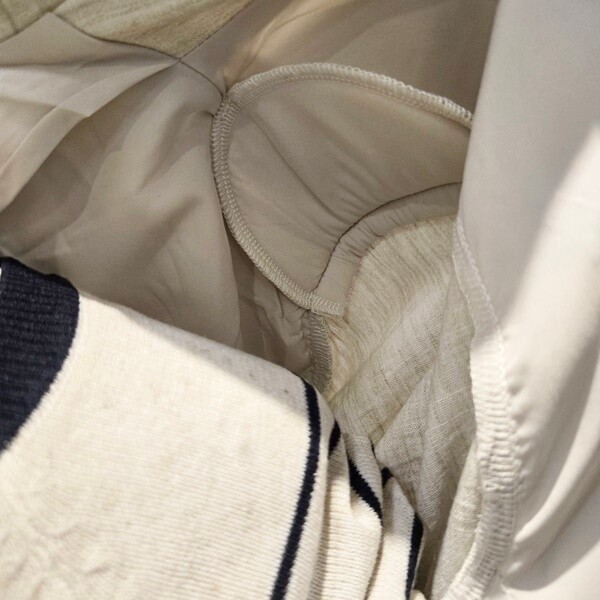 `섬유 특유의 냄새, 마 소재에 올 뭉침, 니트 소재에 특성상 실이 올라와 있거나 마감선이 튀어나와 있을 때 약간의 이염, 잡사, 이중 박음 있을 수 있으며 이는 불량으로 취급하지 않습니다.