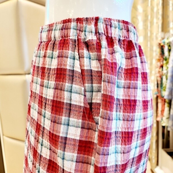 주름지 선염체크 반바지로 시원하고 찰랑거리는 느낌이 좋으며 구김이 없어 관리가 편리합니다.