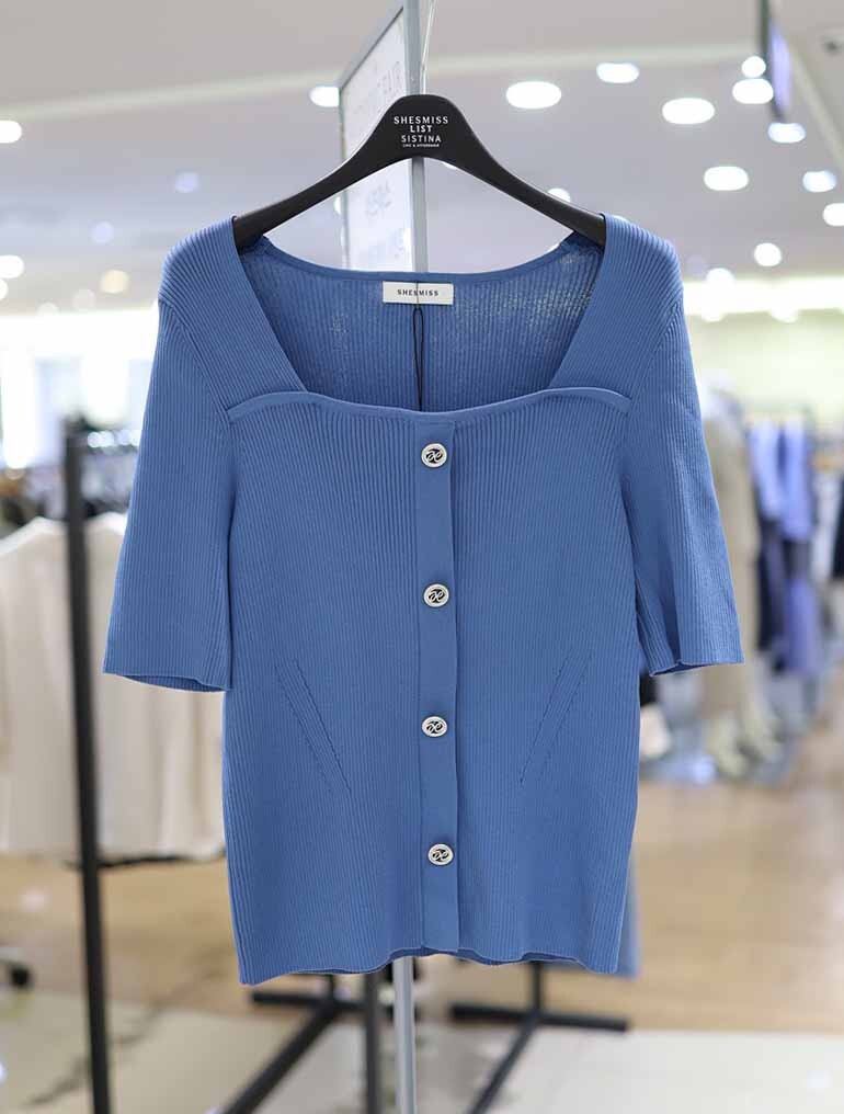 쉬즈미스 버튼 포인트 스퀘어넥 니트 SSKPOO21050