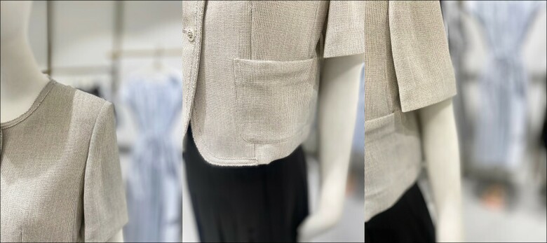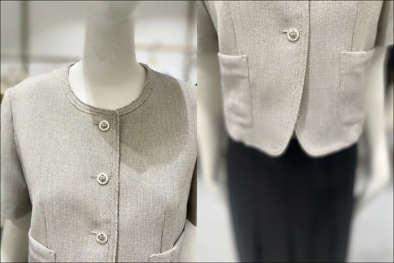 넥라인으로 테슬 포인트를 주어 딱딱한 느낌없이 스타일리쉬하게