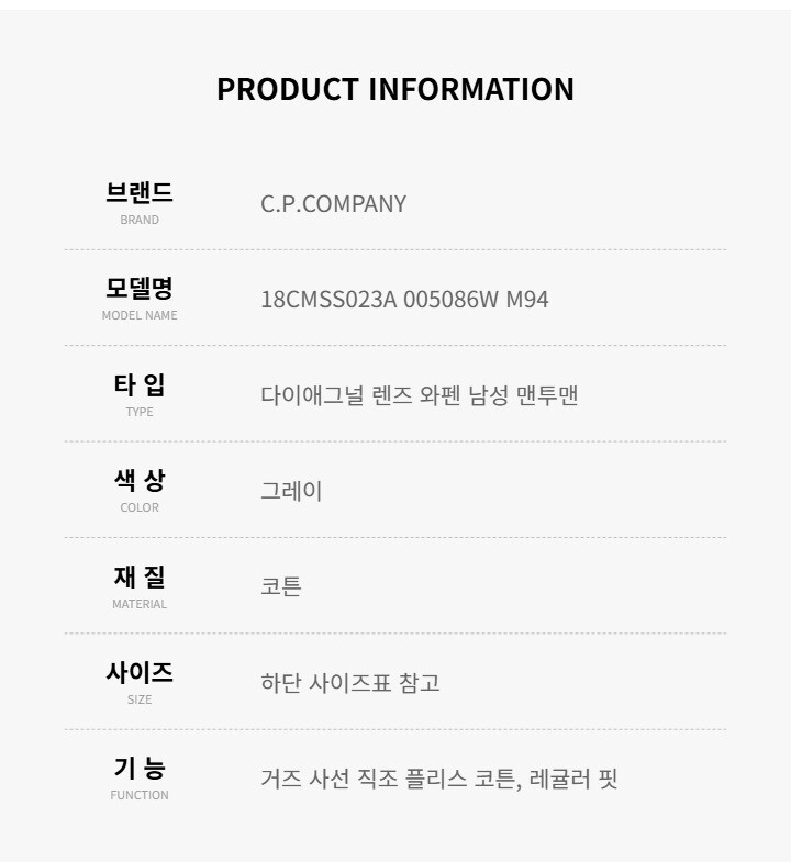 CP컴퍼니 맨투맨 18CMSS023A 005086W M94 다이애그널 렌즈 와펜 남성맨투맨 당일발송