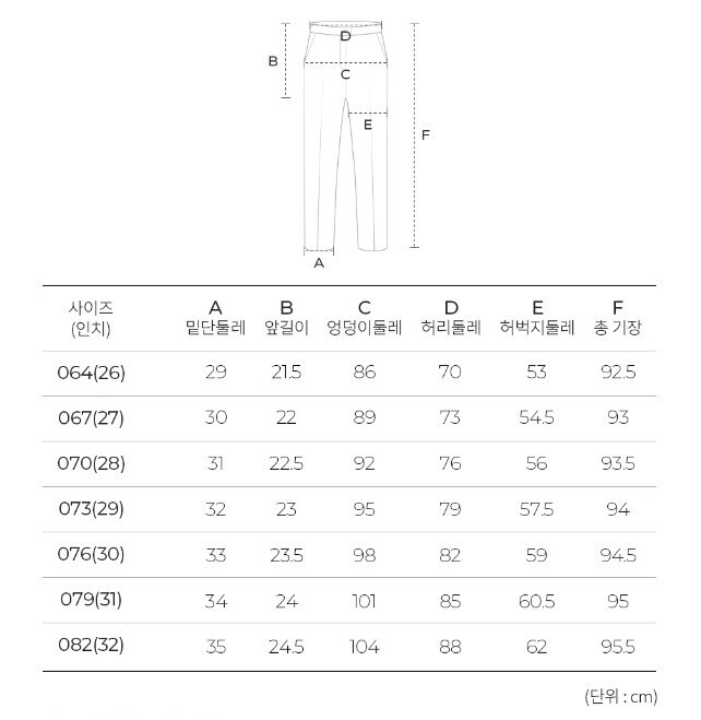 사이즈 : 64(25),67(26),70(27~28),73(28~29),76(30),79(31)