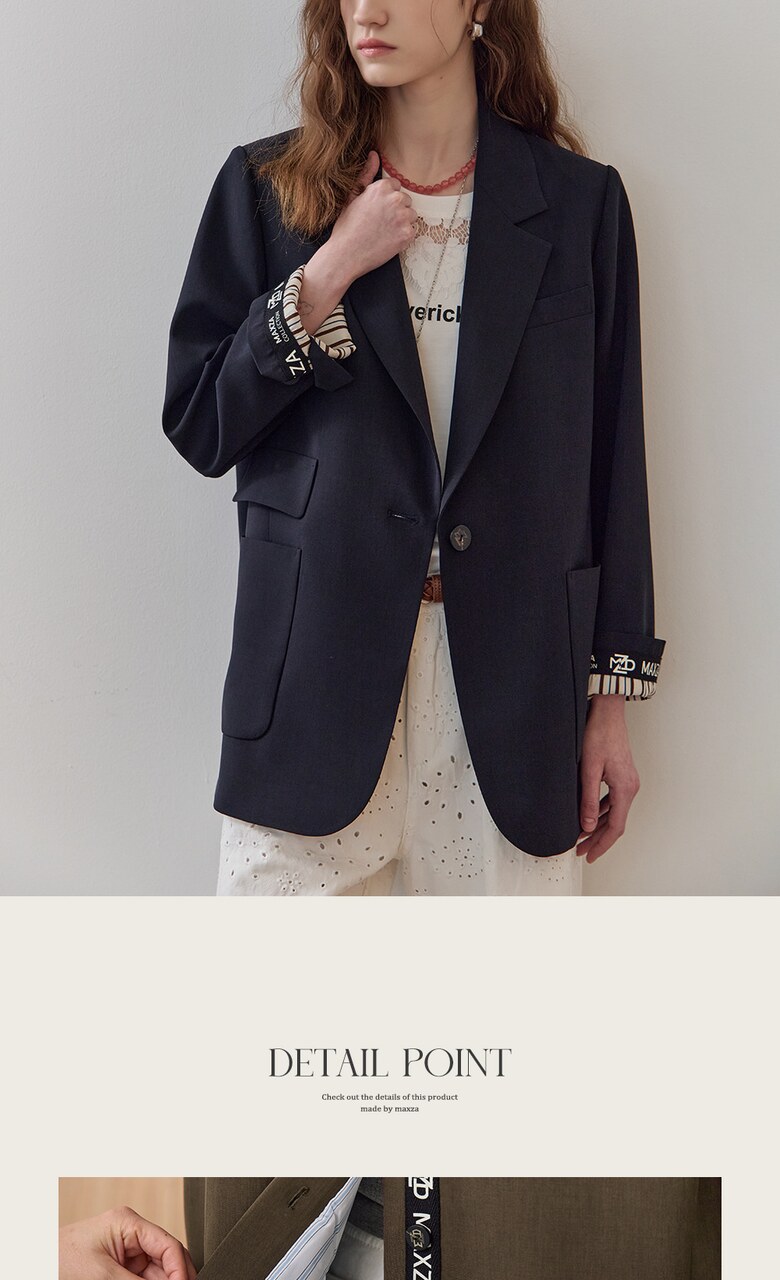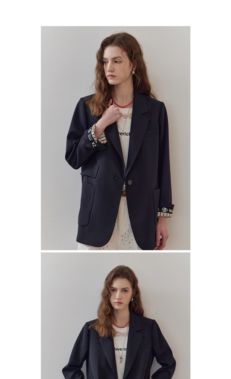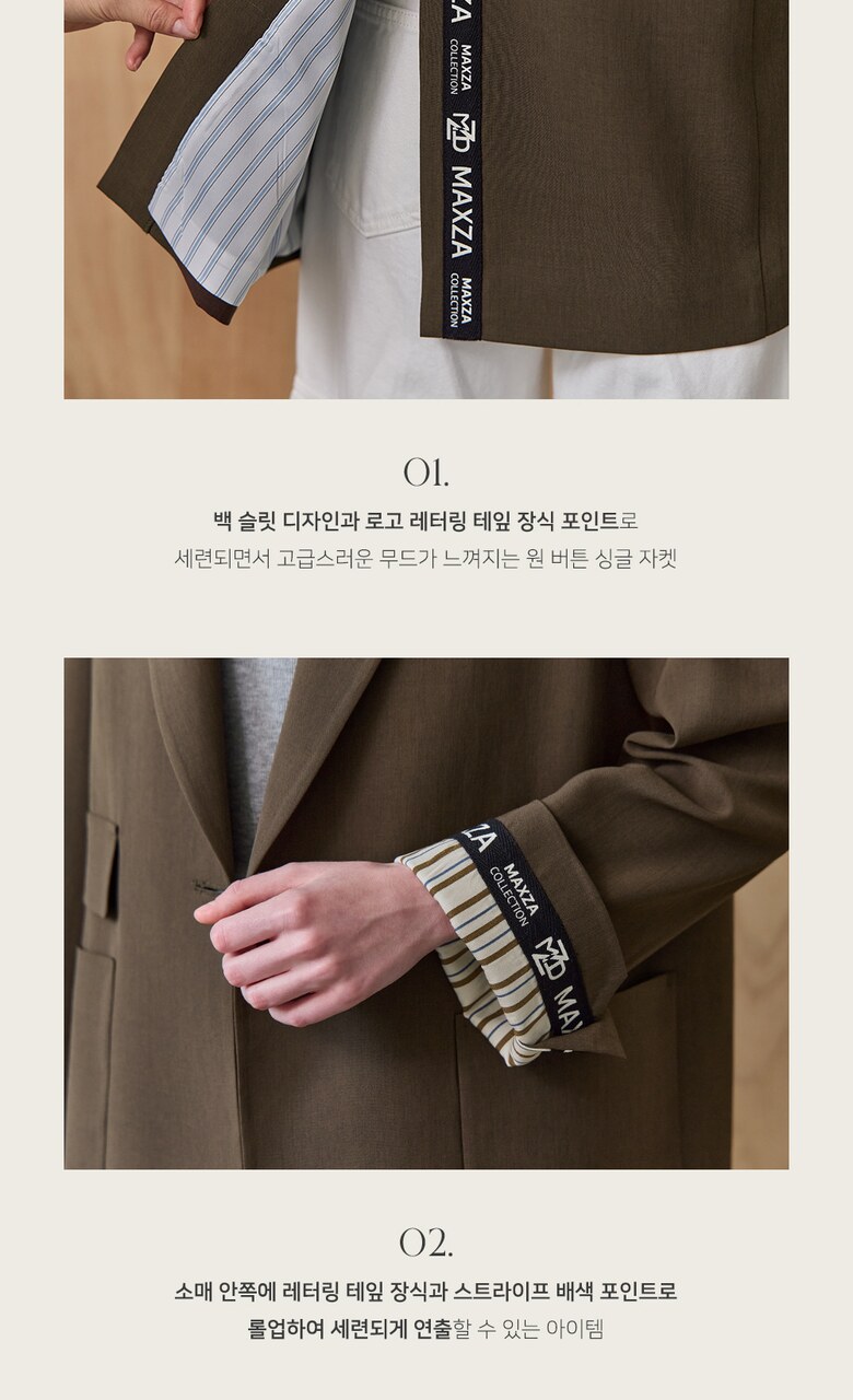 로고 레터링 백슬릿 롤업 원버튼 싱글 자켓