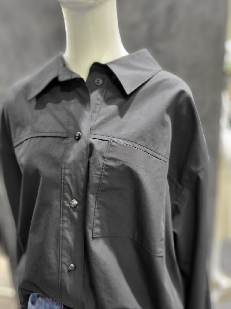 넉넉한 품과 적당한 기장감의 셔츠 실루엣이며,