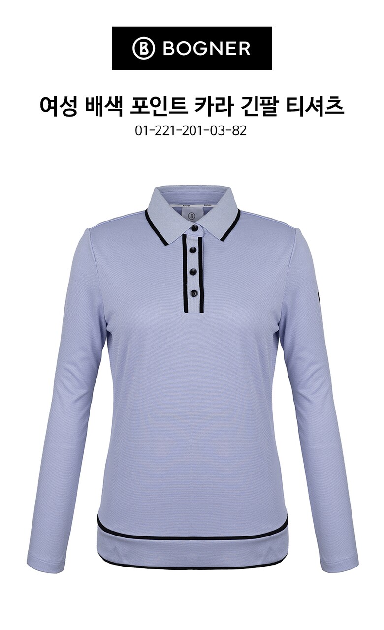 [보그너] 여성 배색 포인트 카라 긴팔 티셔츠 L/VIOLET