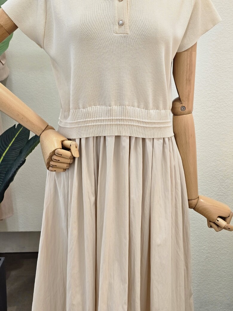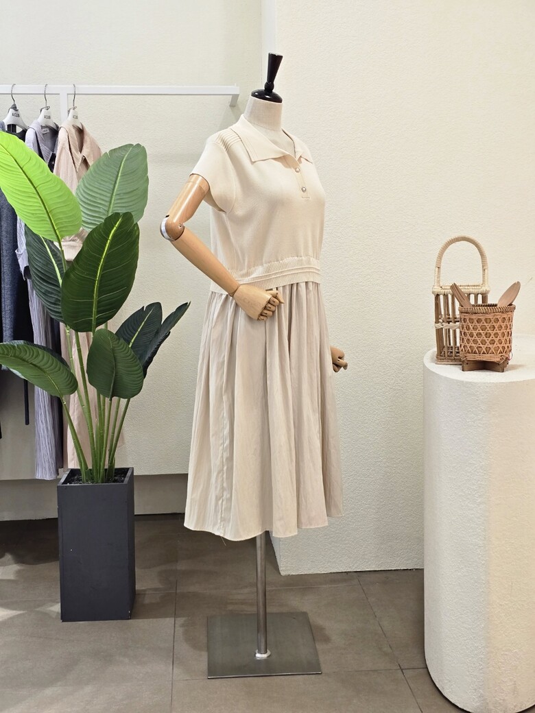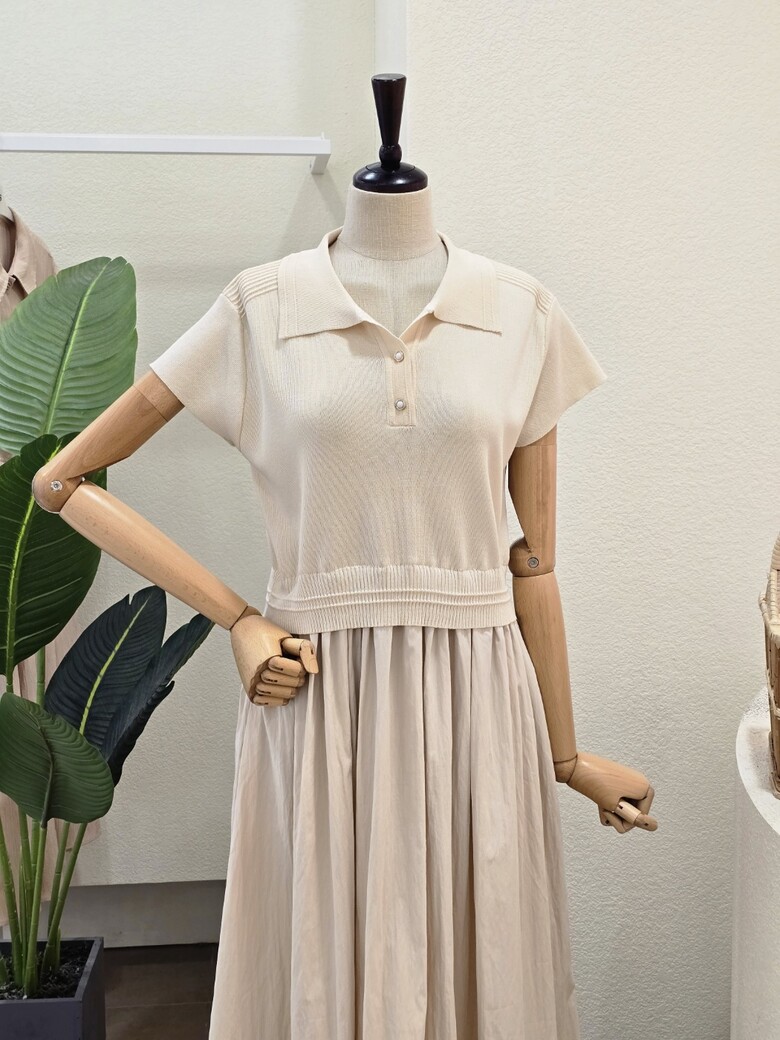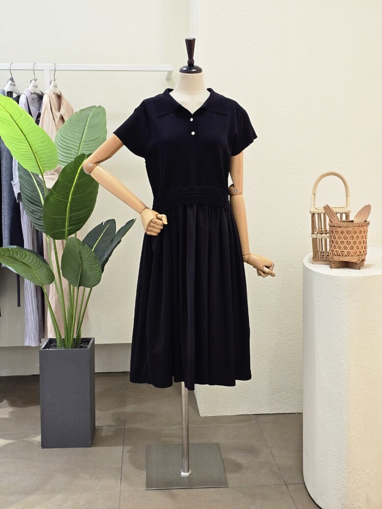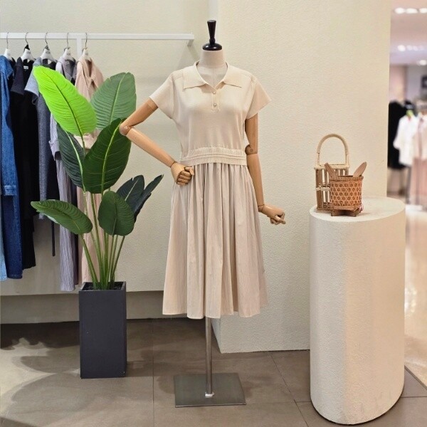 FM5E9OP5197_니트 배색 카라넥 원피스