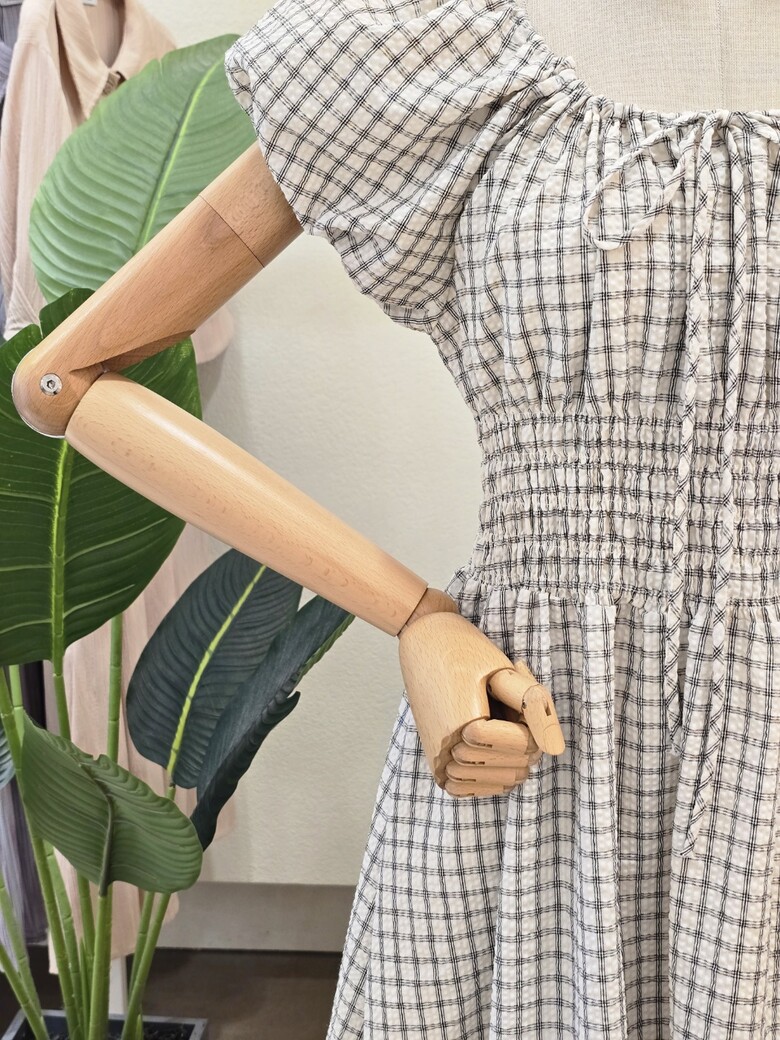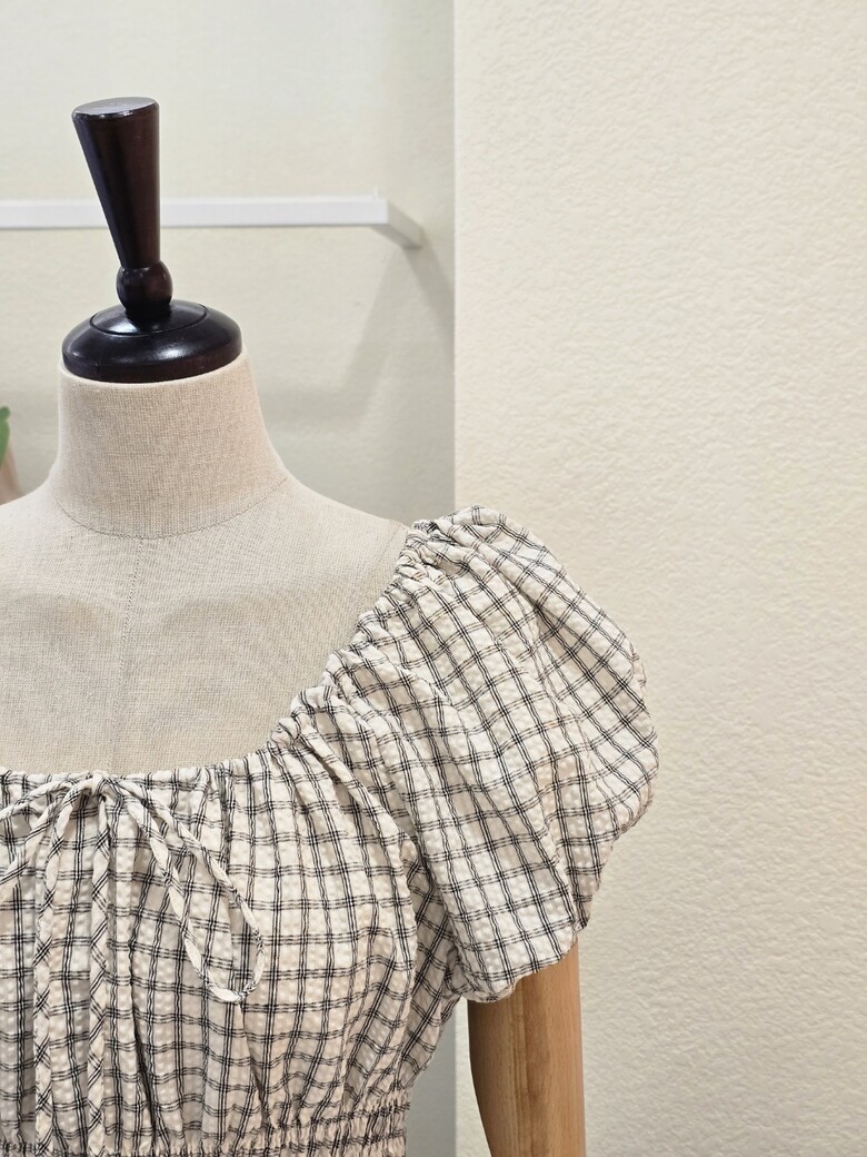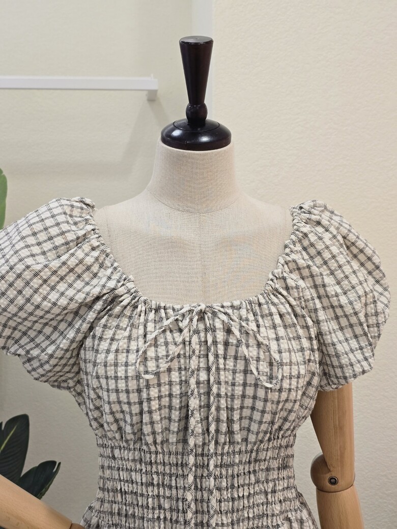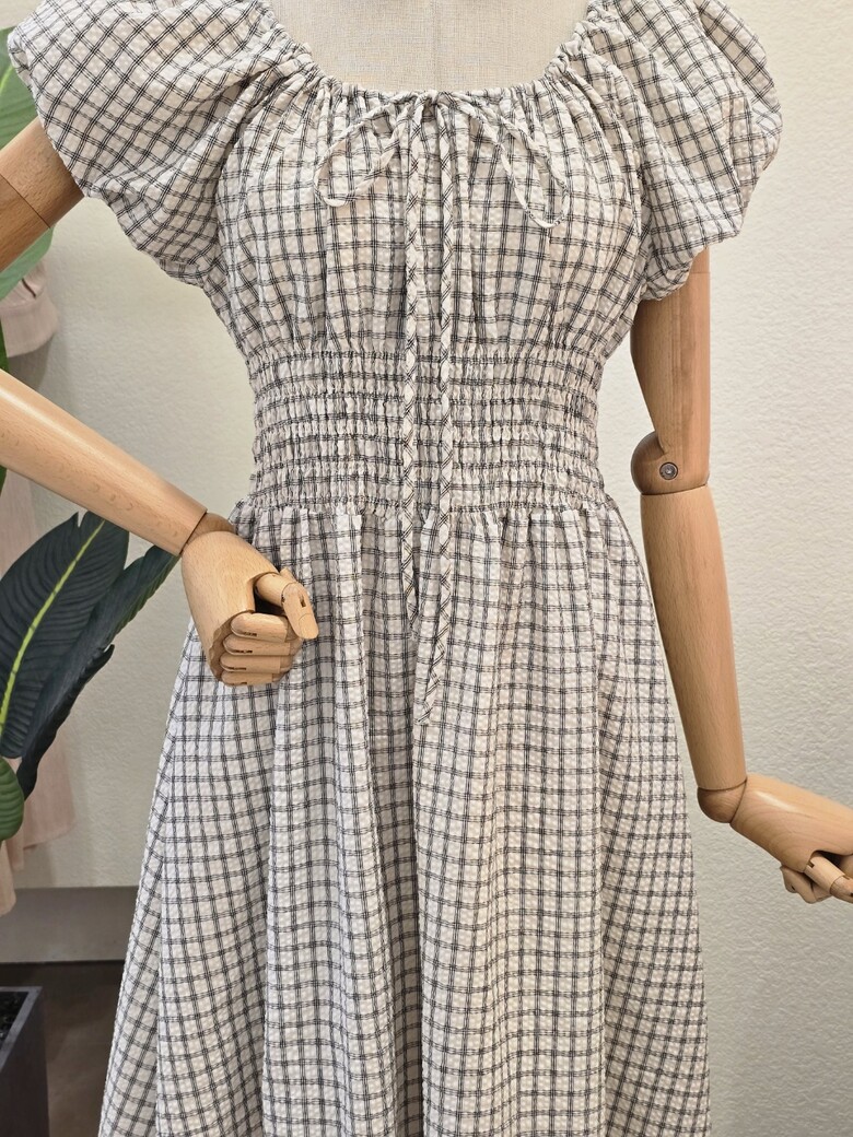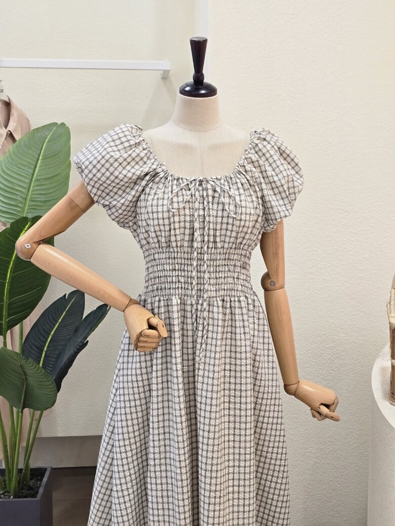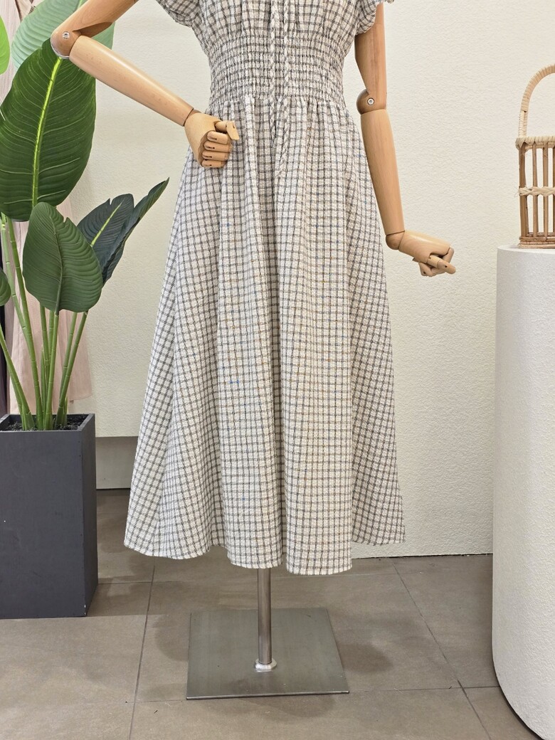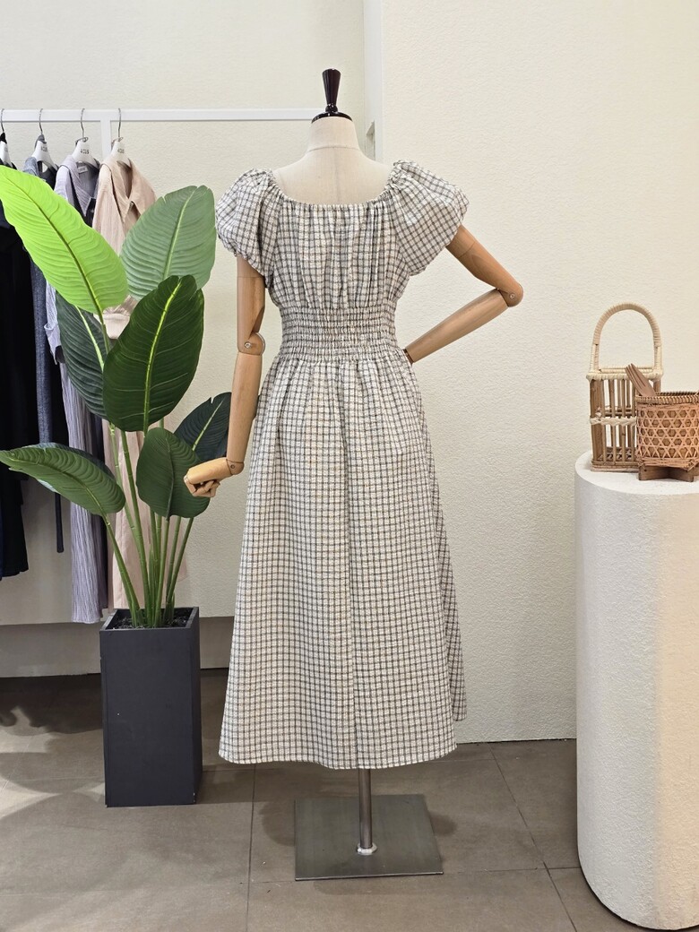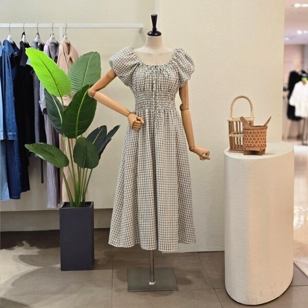 FM5E9OP5206_체크 허리 슬림 셔링 원피스