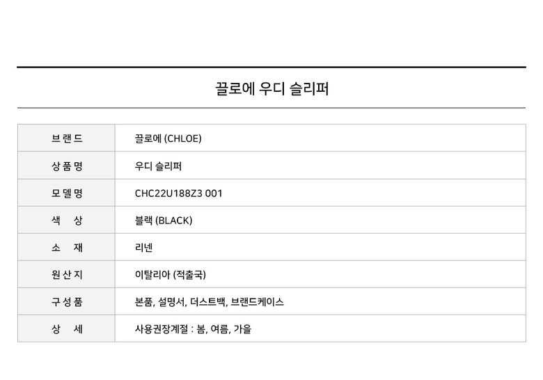 [명품] 25SS 끌로에 우디 슬리퍼 블랙 CHC22U188Z3 001