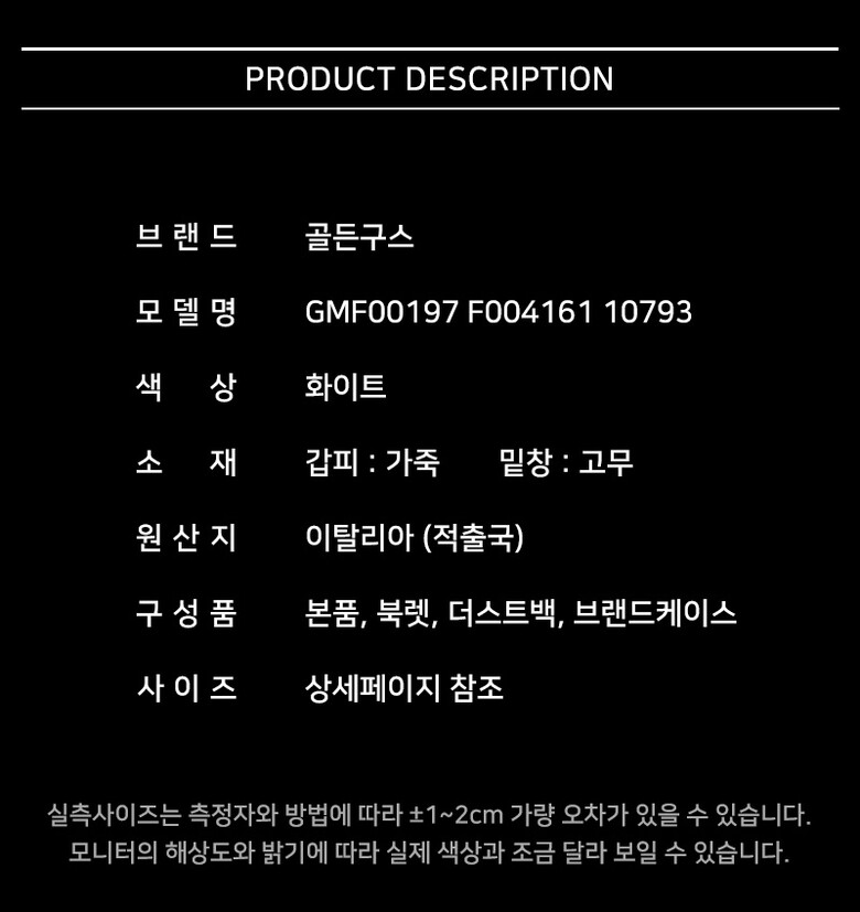 [명품] 25SS 골든구스 퓨어스타 스니커즈 화이트 GMF00197 F004161 10793