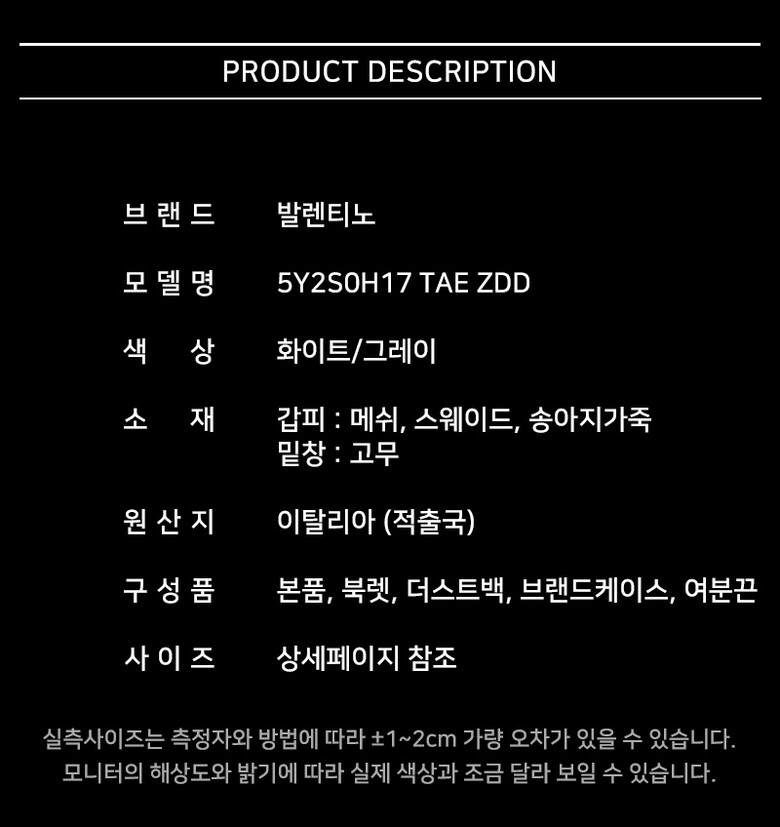 | 1. 제품 소재 (운동화인 경우에는 겉감, 안감을 구분하여 표시) | 상세페이지 참조 |