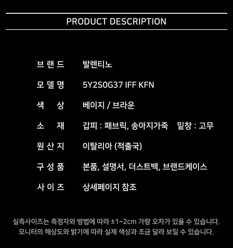 | 1. 제품 소재 (운동화인 경우에는 겉감, 안감을 구분하여 표시) | 상세페이지 참조 |