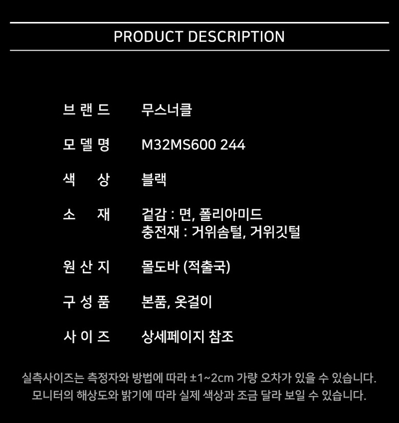 • 처음 배송된 상품상태와 다를 경우(세탁/착용 후 외출하신 경우) 반품이 불가합니다.