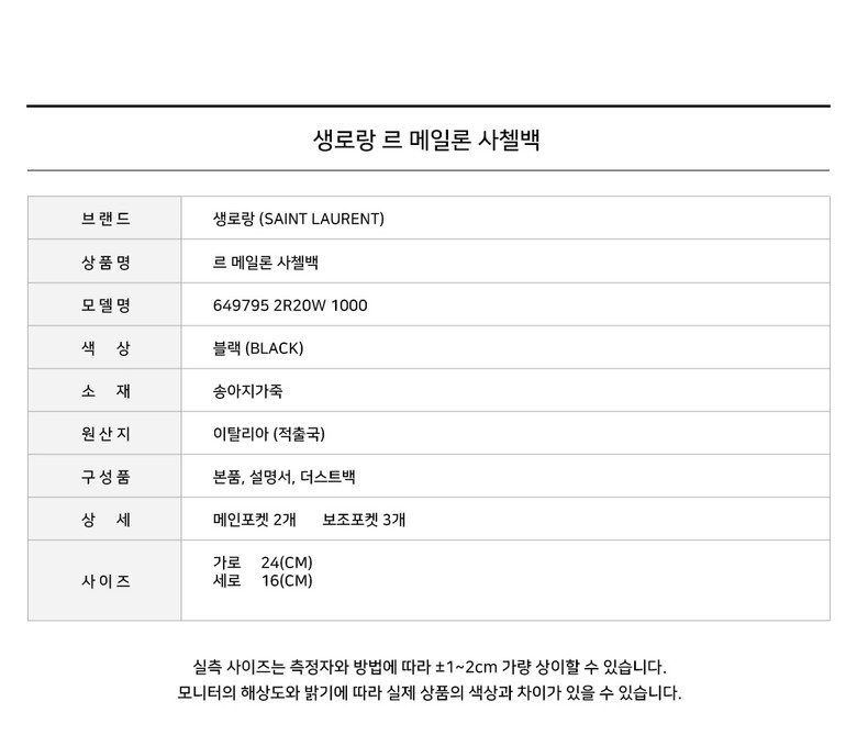 [명품] 생로랑 르 메일론 사첼백 블랙 649795 2R20W 1000