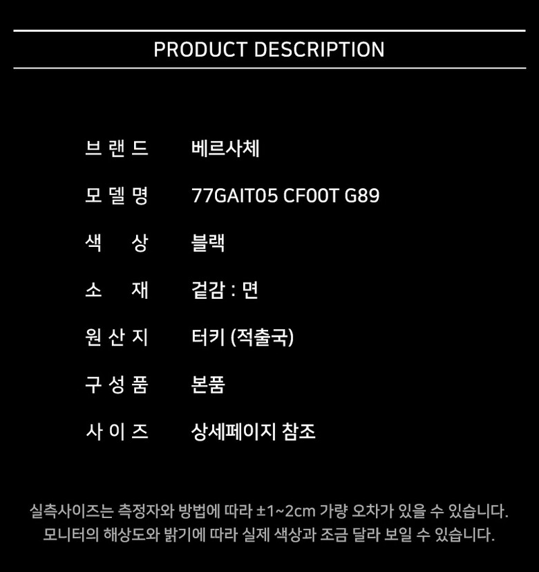 | 1. 제품 소재 (섬유의 조성 또는 혼용률을 백분율로 표시, 기능성인 경우 성적서 또는 허가서) | 상세페이지 참조 |