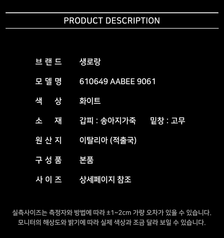 | 1. 제품 소재 (운동화인 경우에는 겉감, 안감을 구분하여 표시) | 상세페이지 참조 |