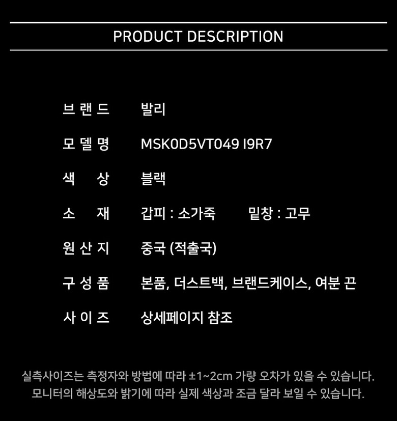 | 1. 제품 소재 (운동화인 경우에는 겉감, 안감을 구분하여 표시) | 상세페이지 참조 |
