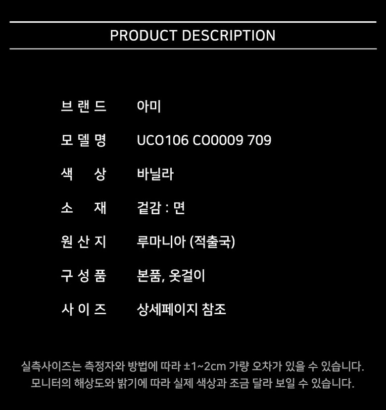 | 6. 세탁방법 및 취급시 주의사항 | 상품상세 참조 |