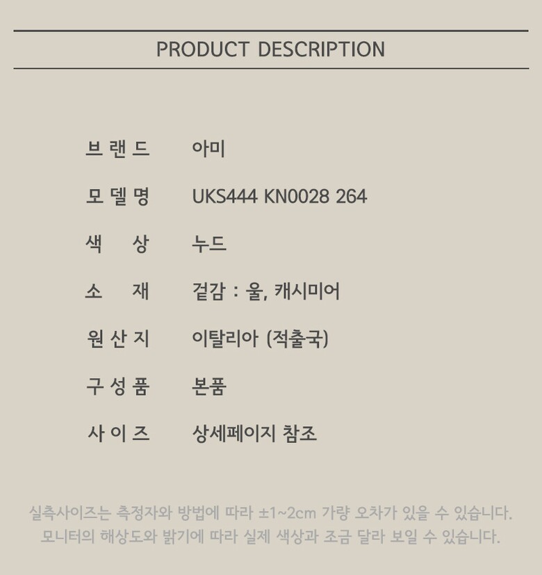 [명품] 아미 하트 로고 퍼널 넥 니트 누드 UKS444 KN0028 264