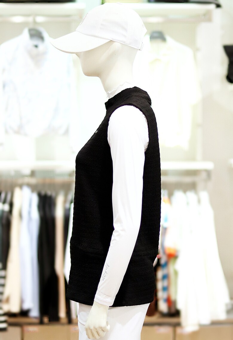 착장감이 편안한 슬리브리스 모크넥 티셔츠입니다