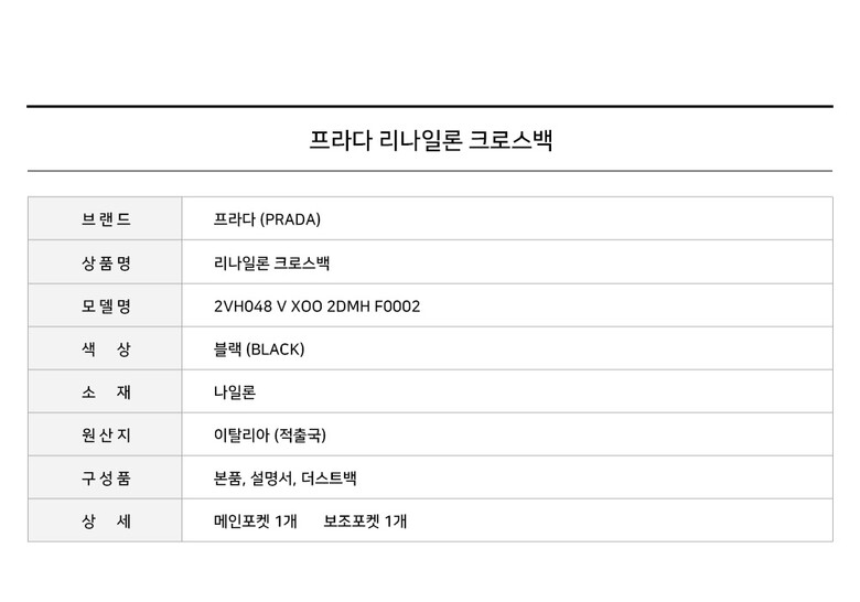 - #리본즈코리아 #2VH048VXOO2DMHF0002 #[명품] #프라다 #리나일론 #크로스백 #블랙 #2VH048 #V #XOO #2DMH #F0002 #남성 #가방/핸드백 #크로스/메신저백