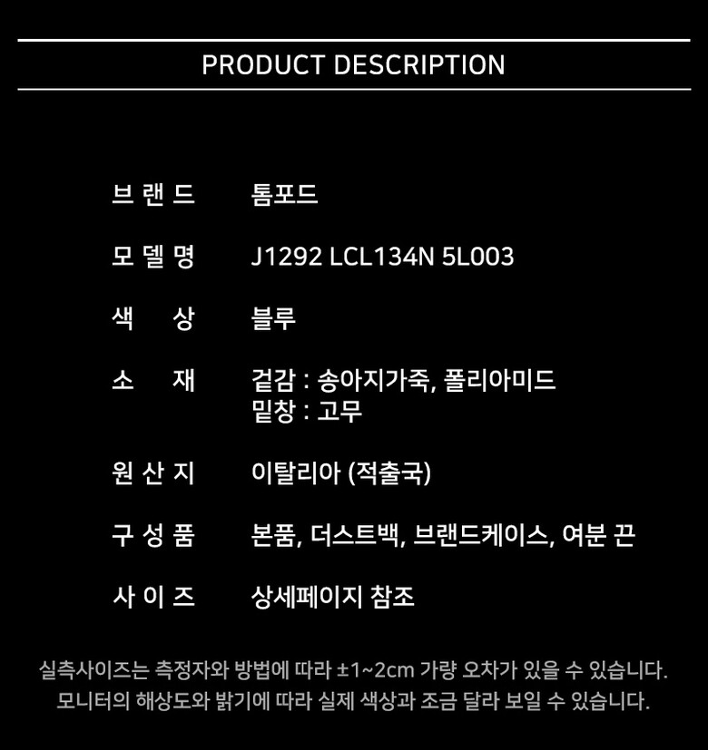| 1. 제품 소재 (운동화인 경우에는 겉감, 안감을 구분하여 표시) | 상세페이지 참조 |