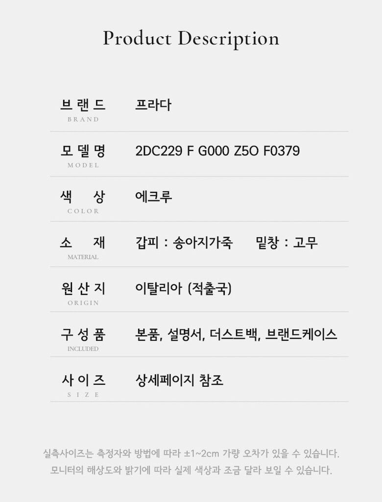 | 1. 제품 소재 (운동화인 경우에는 겉감, 안감을 구분하여 표시) | 상세페이지 참조 |