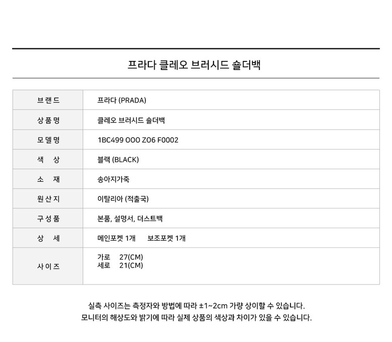 - #리본즈코리아 #1BC499OOOZO6F0002 #[명품] #25SS #프라다 #클레오 #브러시드 #숄더백 #블랙 #1BC499 #OOO #ZO6 #F0002 #여성 #가방/핸드백 #숄더백/호보백