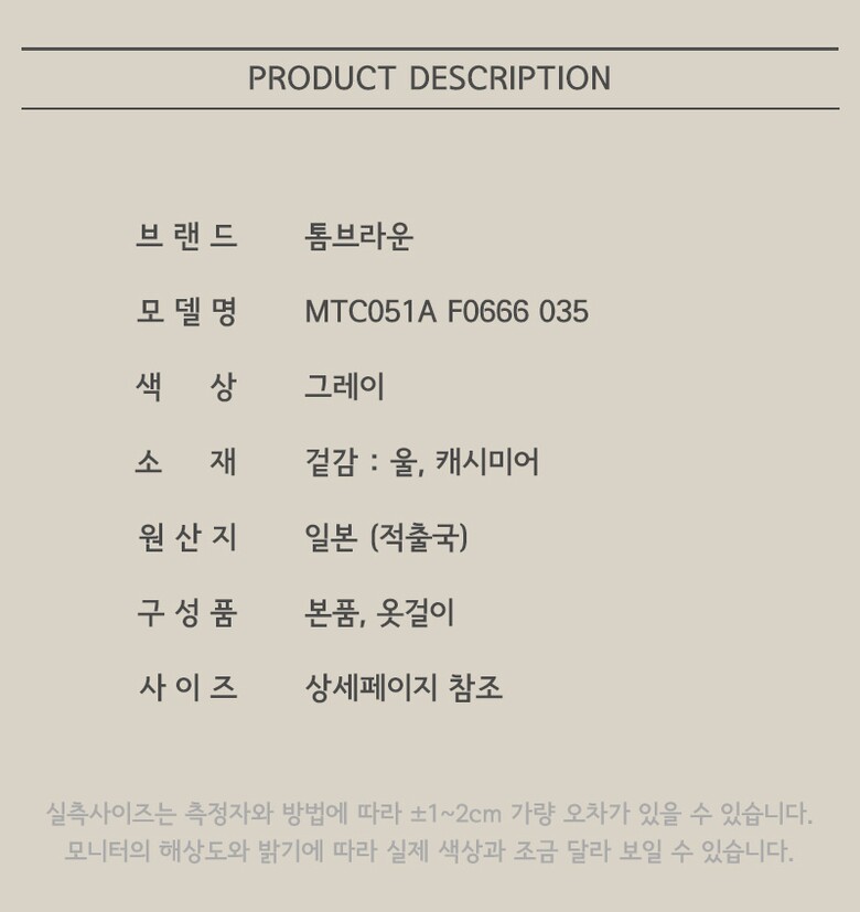 | 6. 세탁방법 및 취급시 주의사항 | 상품상세 참조 |