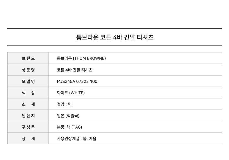 - #리본즈코리아 #MJS245A07323100 #[명품] #25SS #톰브라운 #코튼 #4바 #긴팔 #티셔츠 #화이트 #MJS245A #07323 #100 #남성 #의류 #상의 #긴팔티셔츠