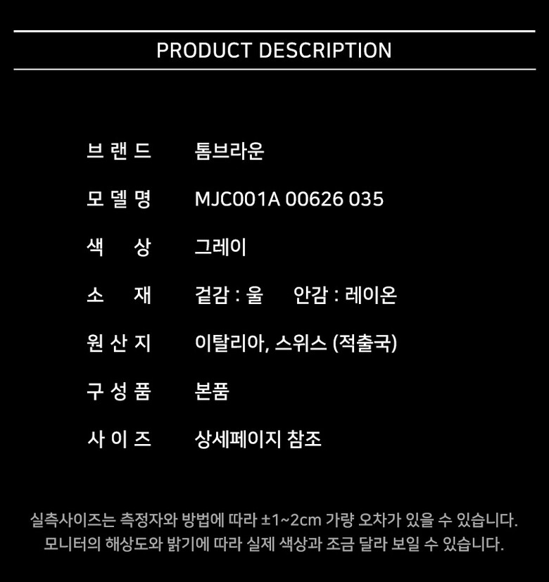 | 6. 세탁방법 및 취급시 주의사항 | 상품상세 참조 |