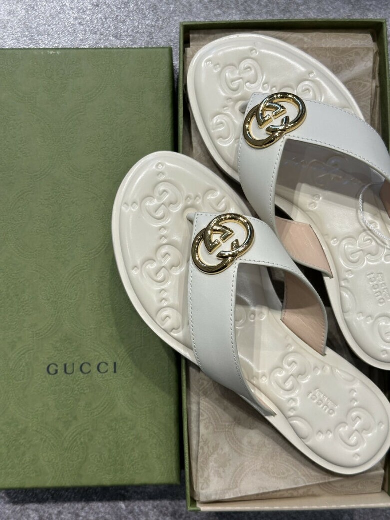 [GUCCI] 구찌 인터로킹 GG 스트랩 슬리퍼 695207 A3N00 9022 WHITE