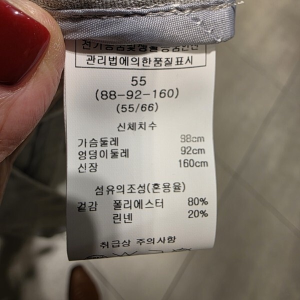 | 1. 제품 소재 (섬유의 조성 또는 혼용률을 백분율로 표시, 기능성인 경우 성적서 또는 허가서) | 폴리에스터 80% 린넨 20% |