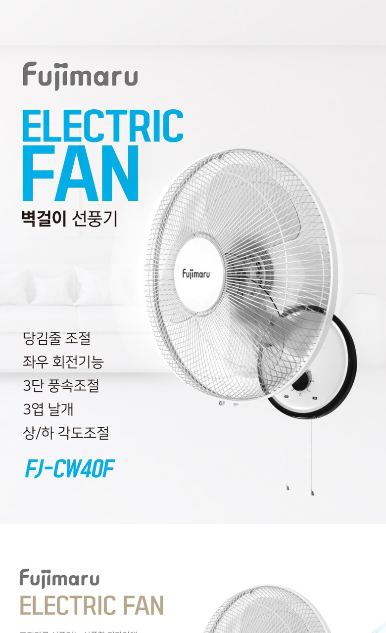 후지마루 3단 벽걸이형 선풍기 FJ-CW40F [3엽날개]