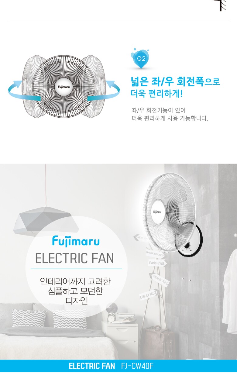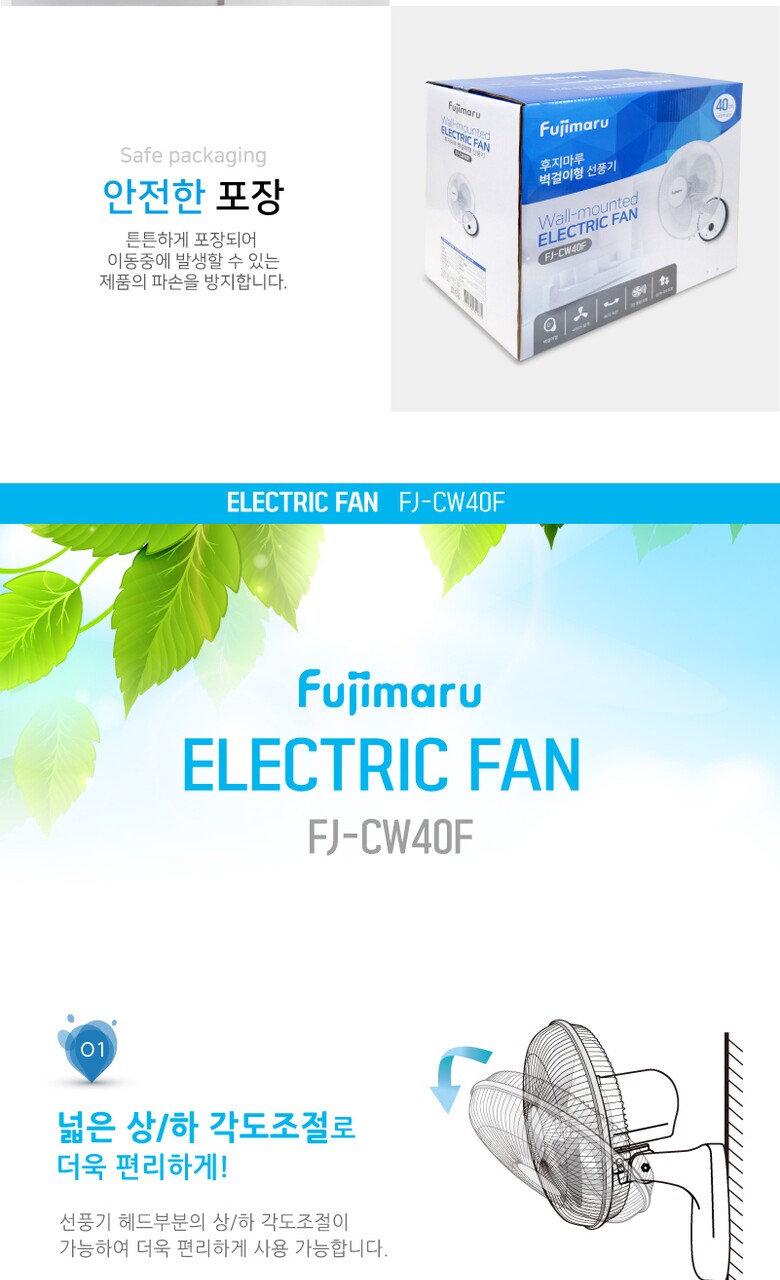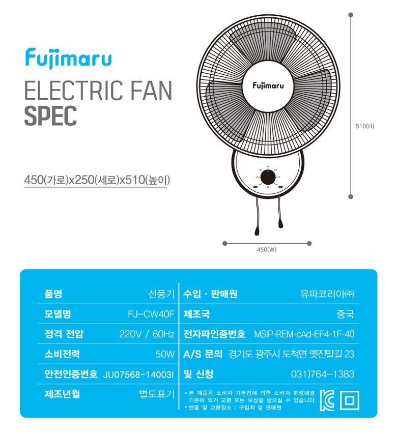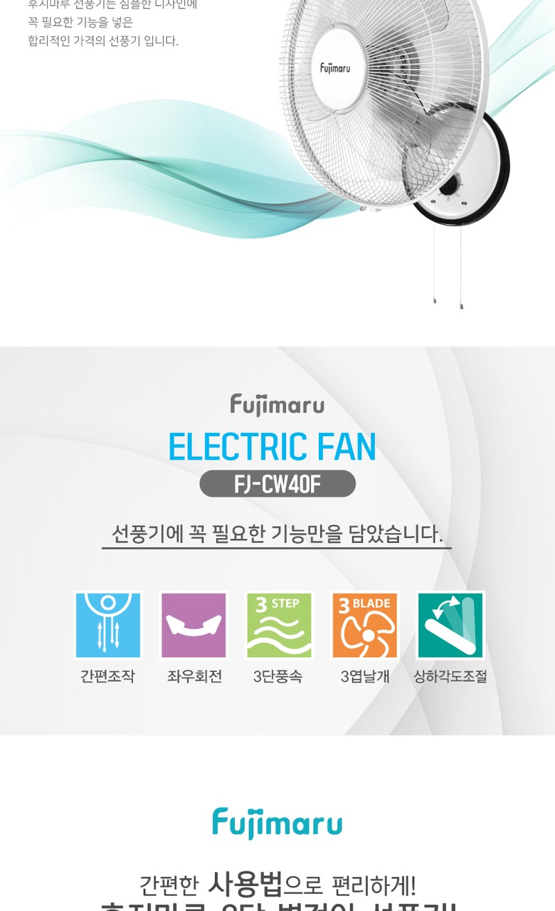 후지마루 3단 벽걸이형 선풍기 FJ-CW40F [3엽날개]