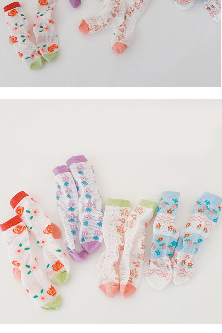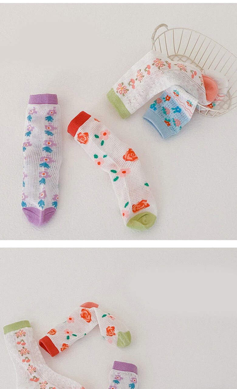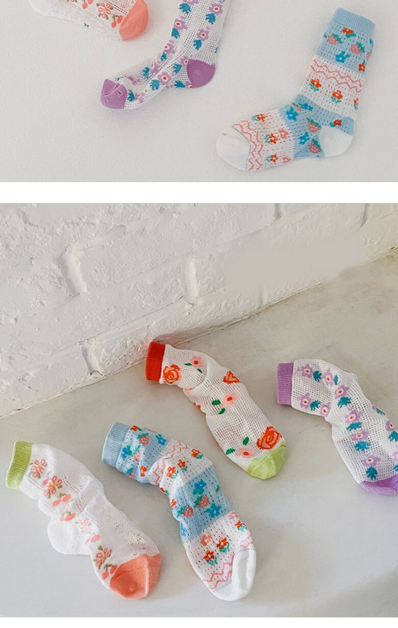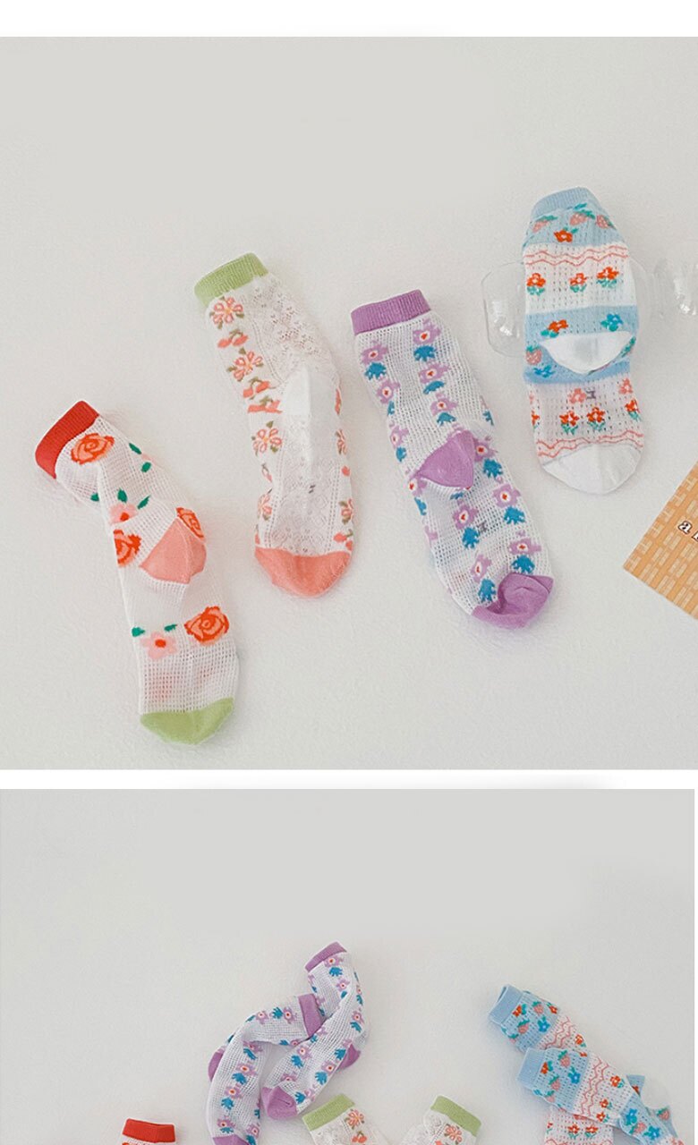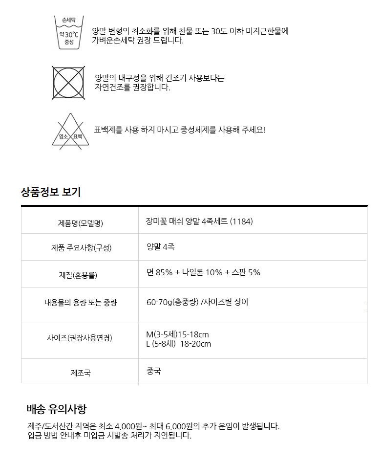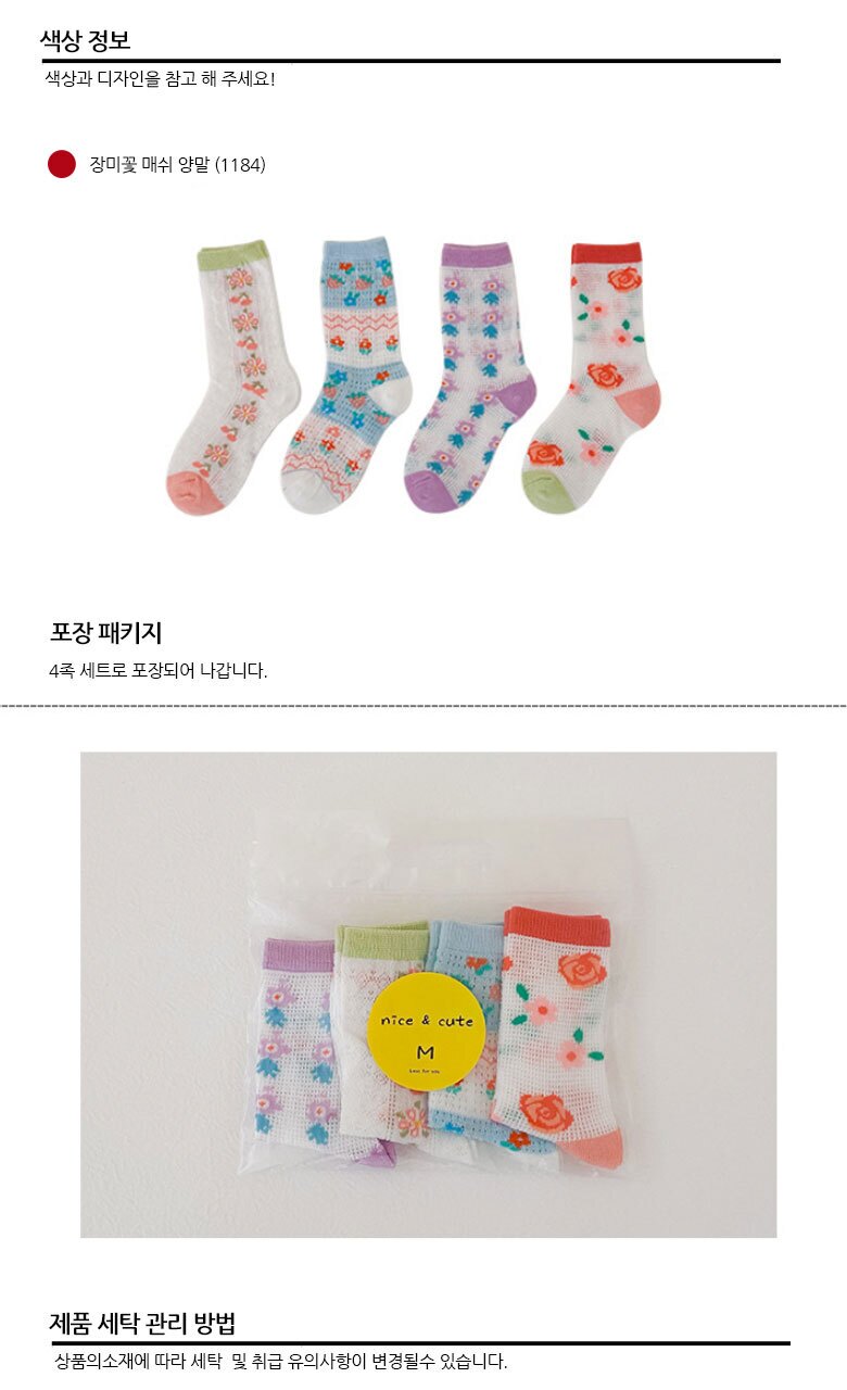 장미꽃 매쉬 여아양말 4족세트(1184)