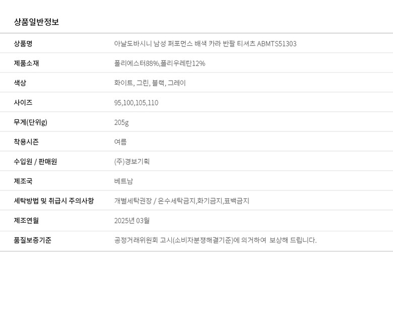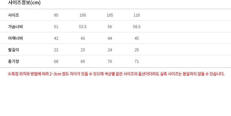 | 6. 세탁방법 및 취급시 주의사항 | 개별세탁권장/온수세탁금지,화기금지,표백금지 |