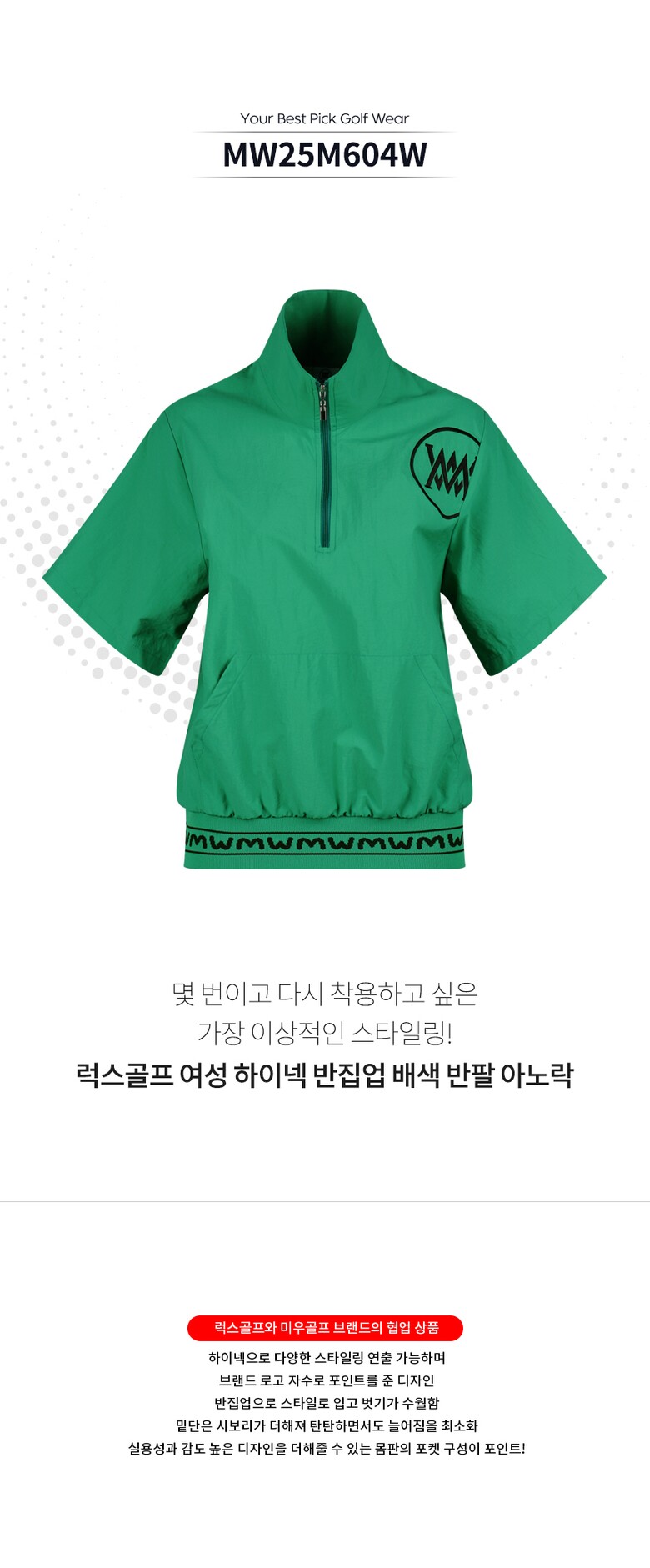 보스케 여성 여름 골프 반집업 배색 반팔 아노락 티셔츠 BQ25127