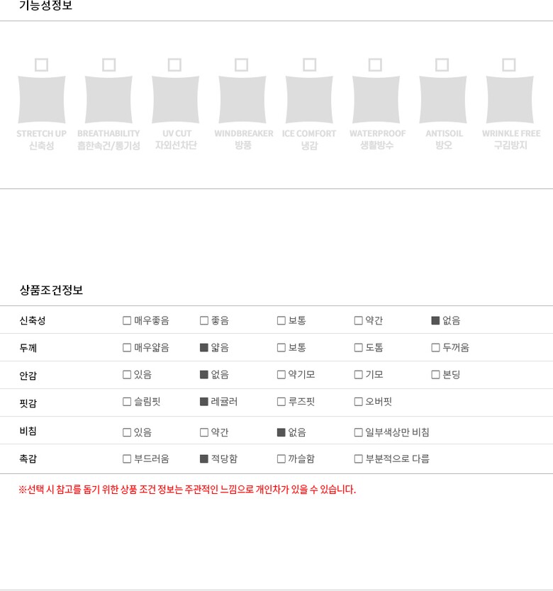 | 9. 상품별 세부 사양 | 상세설명참조 |
