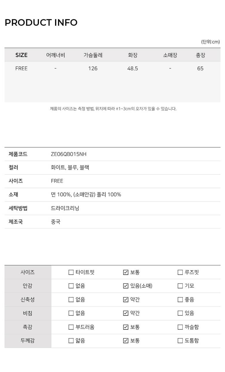 MODEL / 블루,블랙,화이트(FREE) 착용