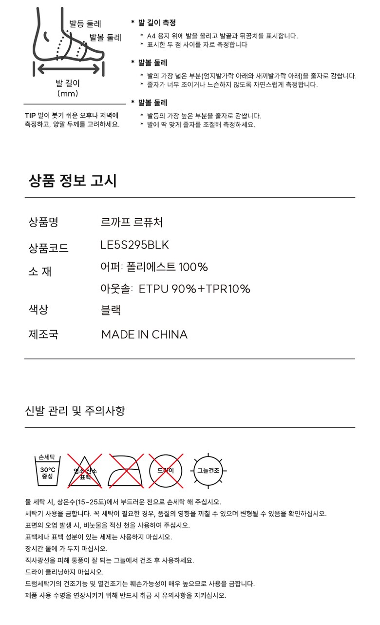 1. 제품 소재 (운동화인 경우에는 겉감, 안감을 구분하여 표시) 상세페이지 참조