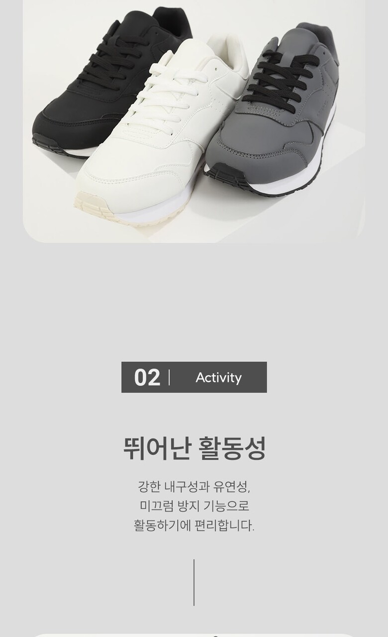 1. 제품 소재 (운동화인 경우에는 겉감, 안감을 구분하여 표시) 상세페이지 참조