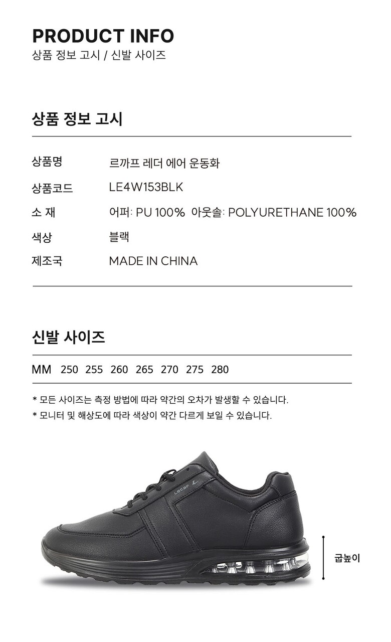 르까프 레더 에어 운동화 LE4W153 2종 택1