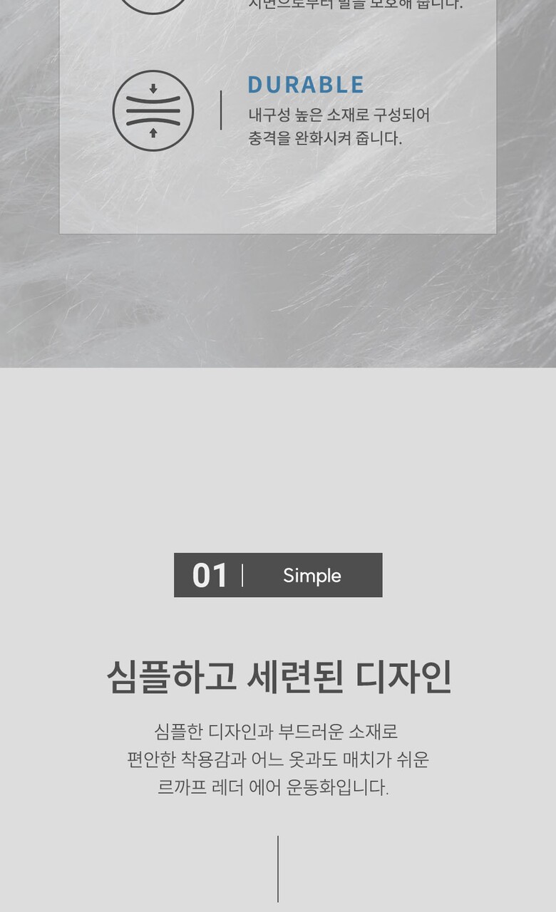 1. 제품 소재 (운동화인 경우에는 겉감, 안감을 구분하여 표시) | 상세페이지 참조 |