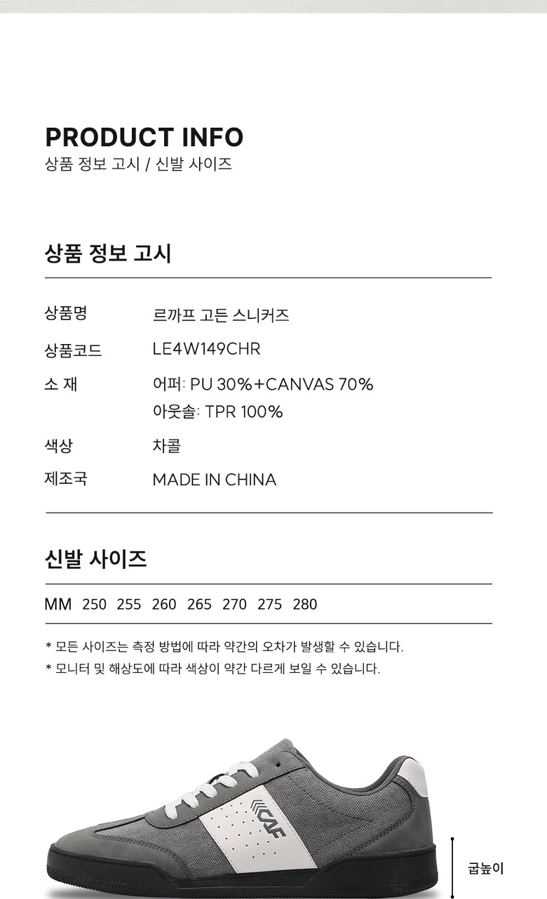르까프 고든 스니커즈 운동화 차콜 LE4W149CHR