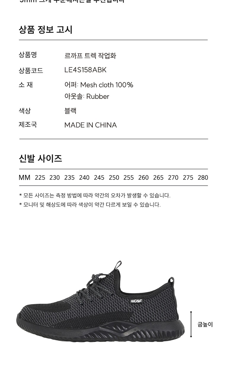 르까프 트렉 스틸 토 캡 워크화 블랙 LE4S158ABK