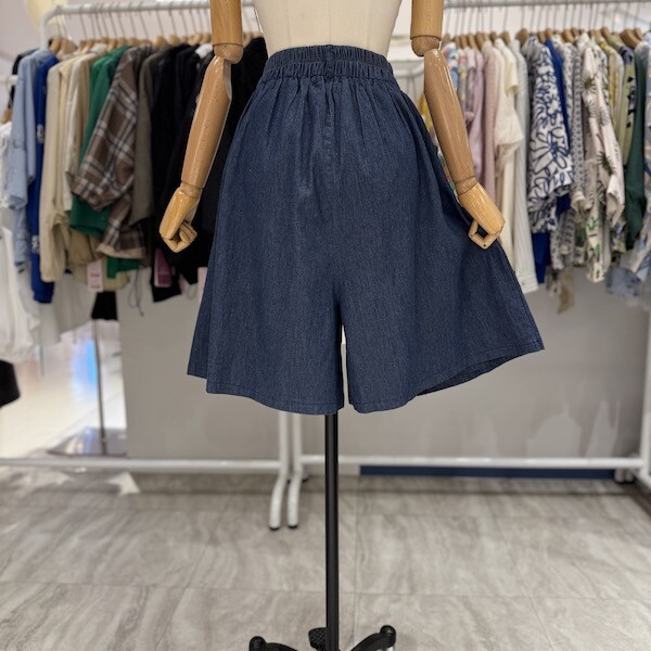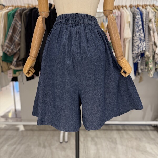 A25DM5219_플리츠 랩 ST 데님 반바지