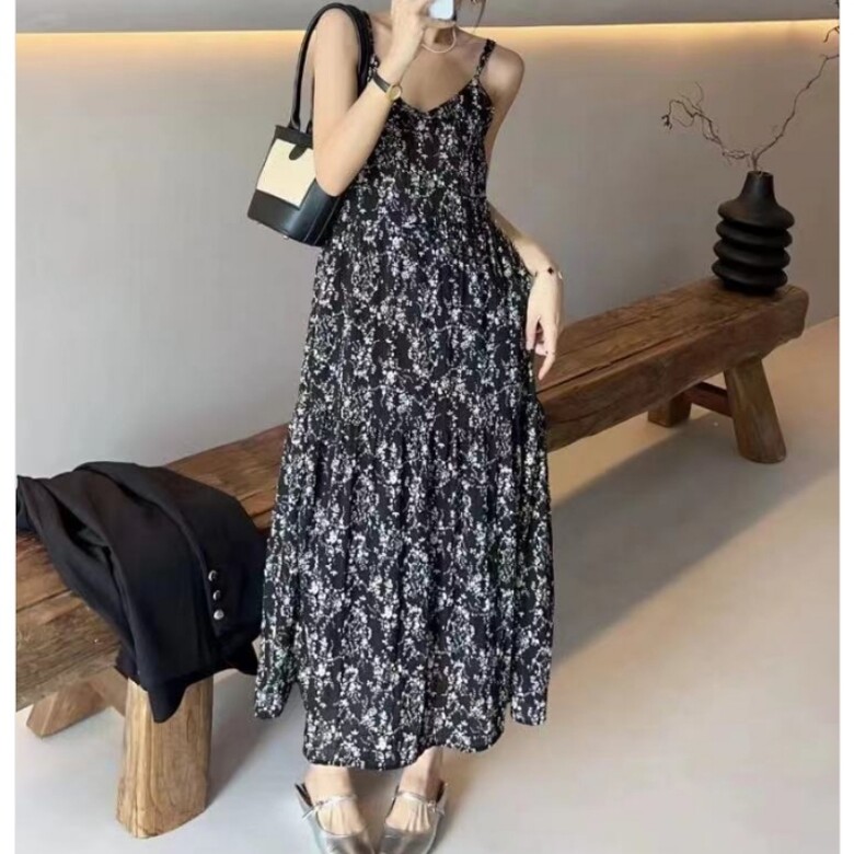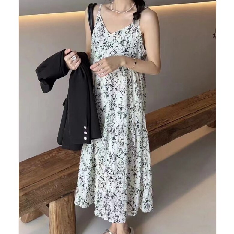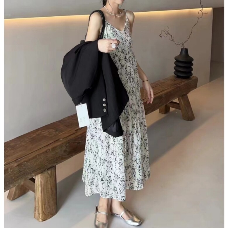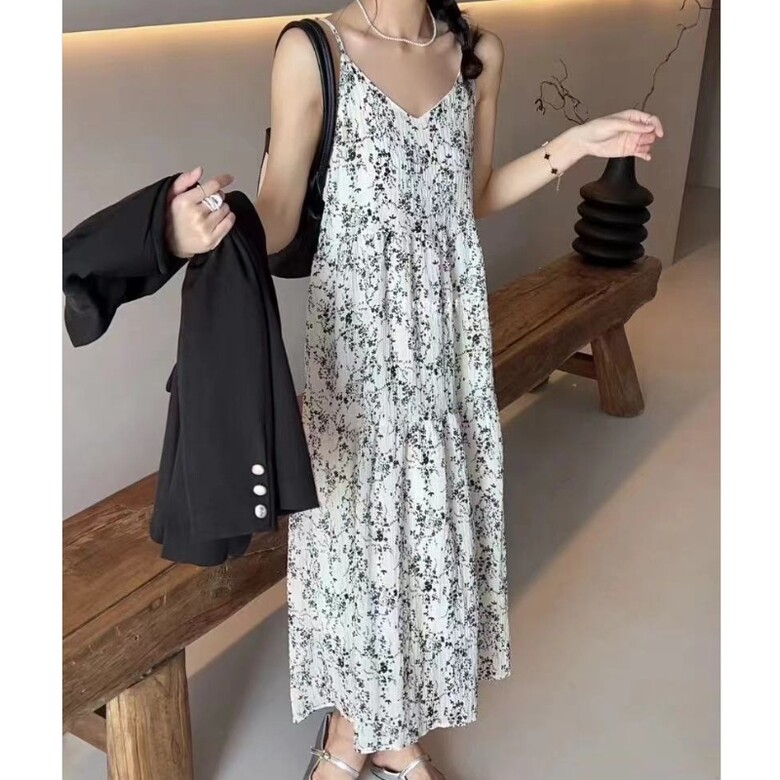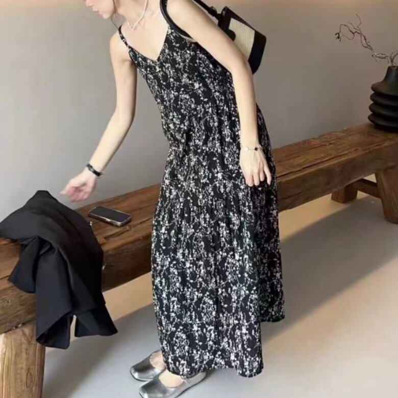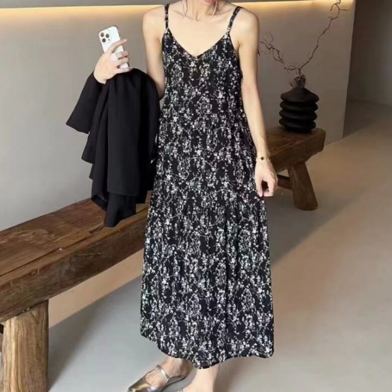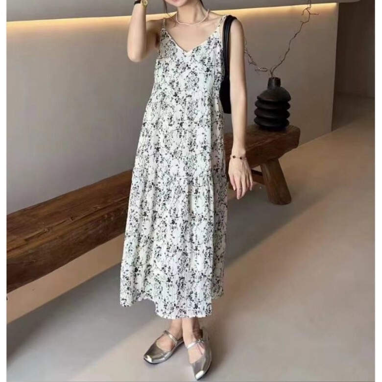 랜델 프린트 쉬폰 민소매 원피스 2color_250521_HN27